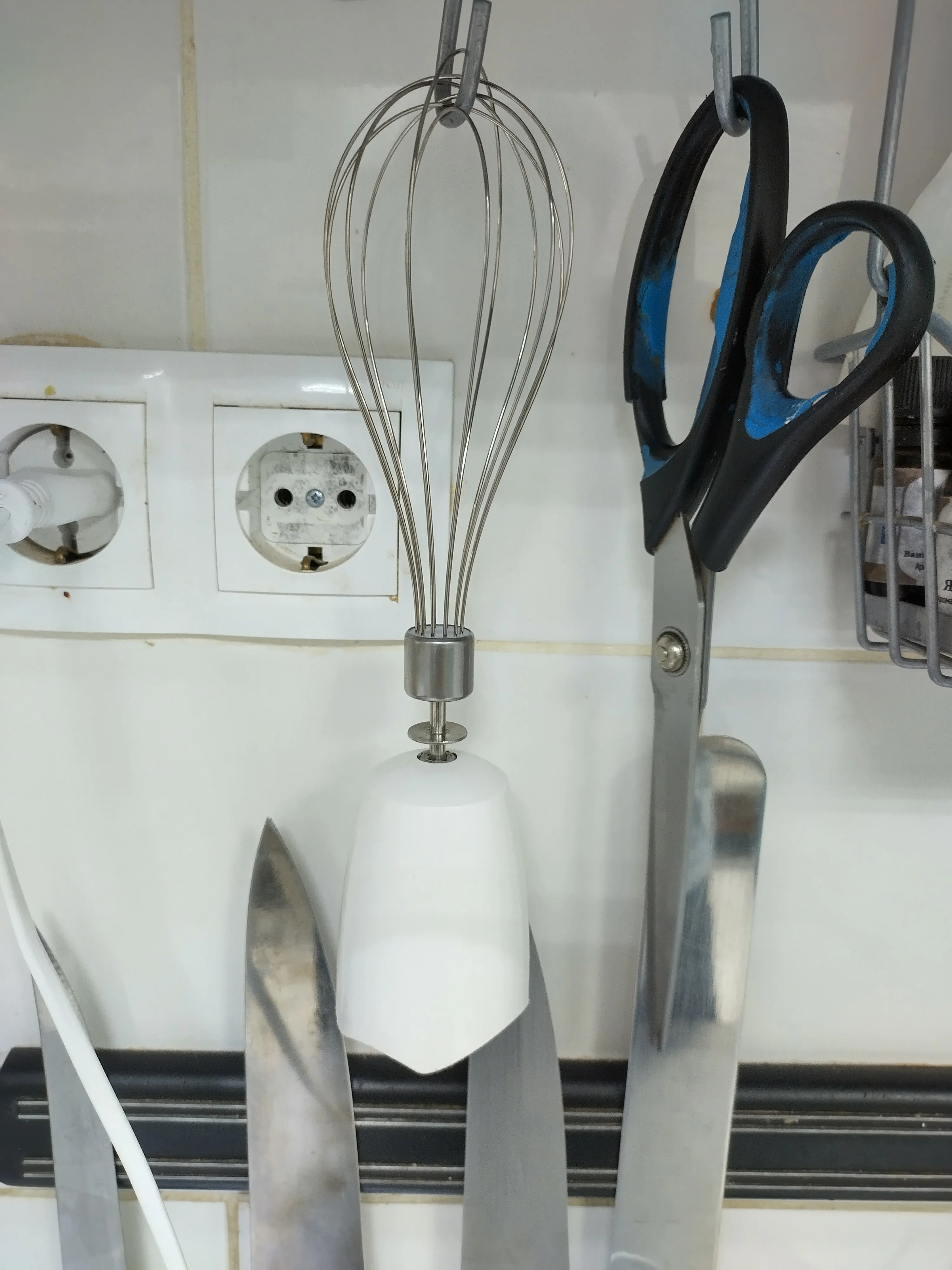 Венчик хороший, однако информации о товаре было недостаточно, и к моему блендеру он не подходит. Диаметр стержня 4.4мм!!!!!, длина свободной части от шайбы 30мм. Зря заказал. :( Может пригодиться лишь в походе, если вращать венчик шуруповертом.
