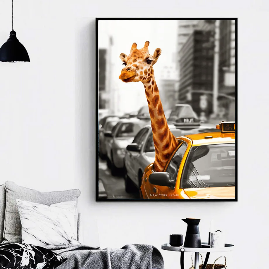 Винтажные настенные картины Нью-Йорк, жираф, такси, Лондон, пейзаж, скандинавские плакаты и принты, настенные картины для гостиной