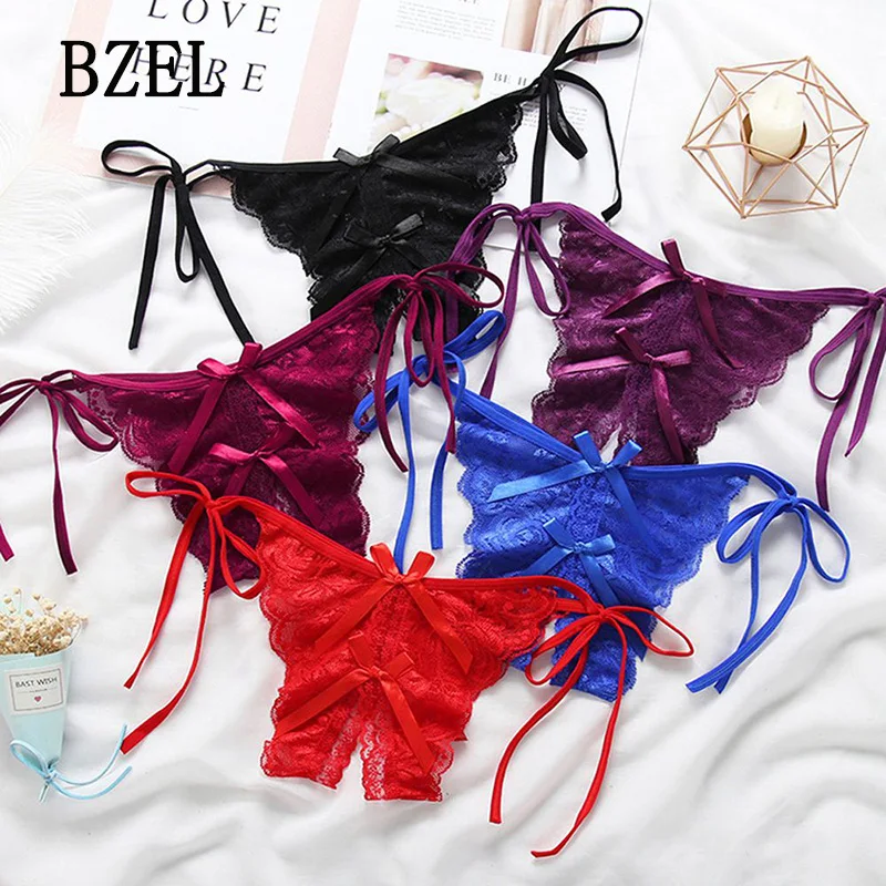 Женские Эротические трусики BZEL, интимное бесшовное нижнее белье, женские тонкие сексуальные бандажные трусики, женские кружевные трусики с бантом