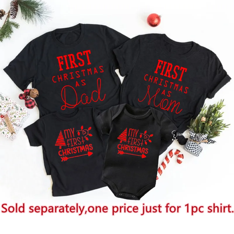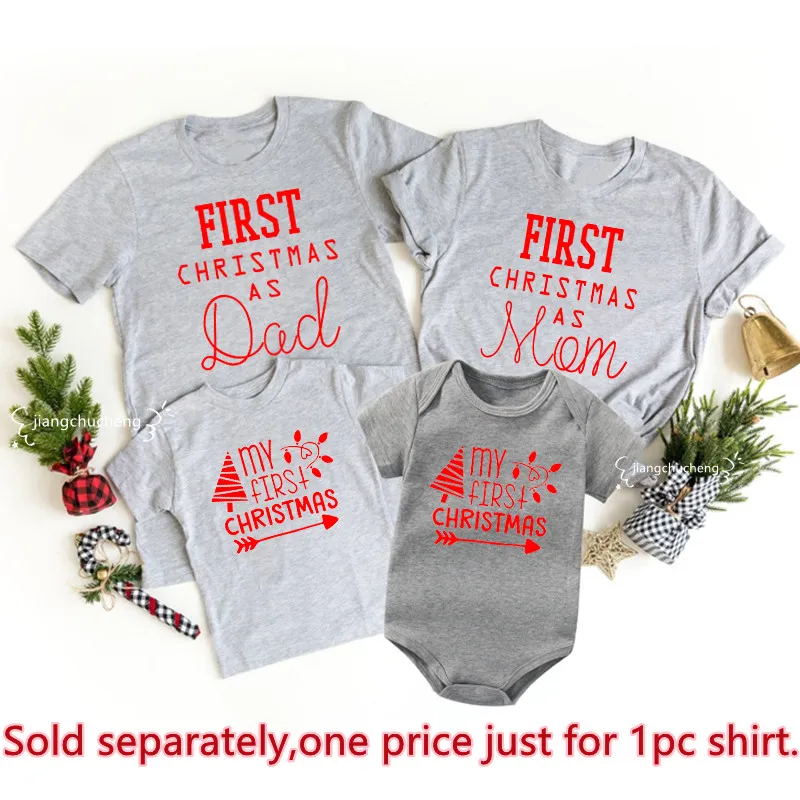 Мой первый Рождество как папа мама семейная сочетающаяся одежда для отца мамы Дети рубашки Детский Комбинезон хлопковый семейный образ Новогодняя одежда