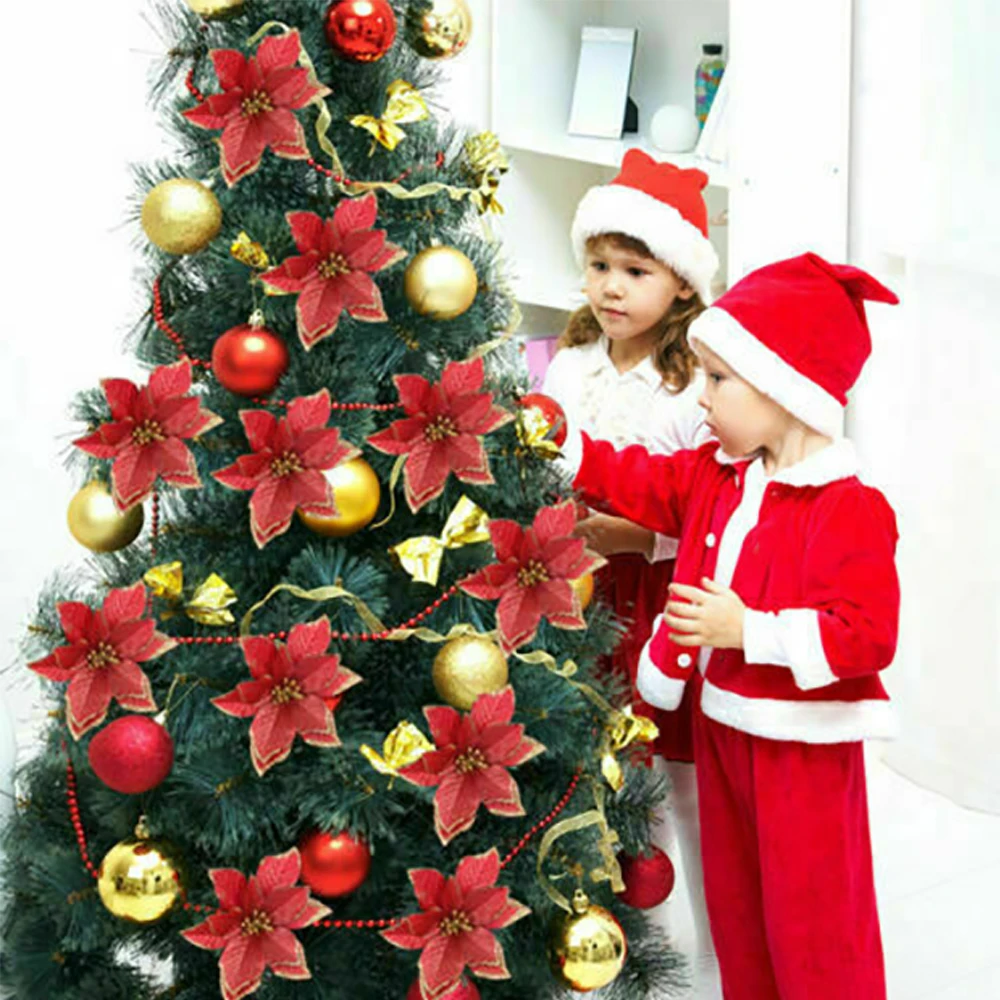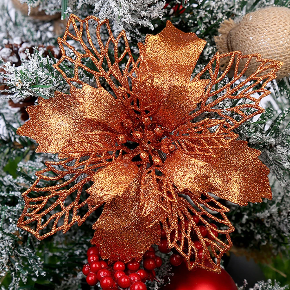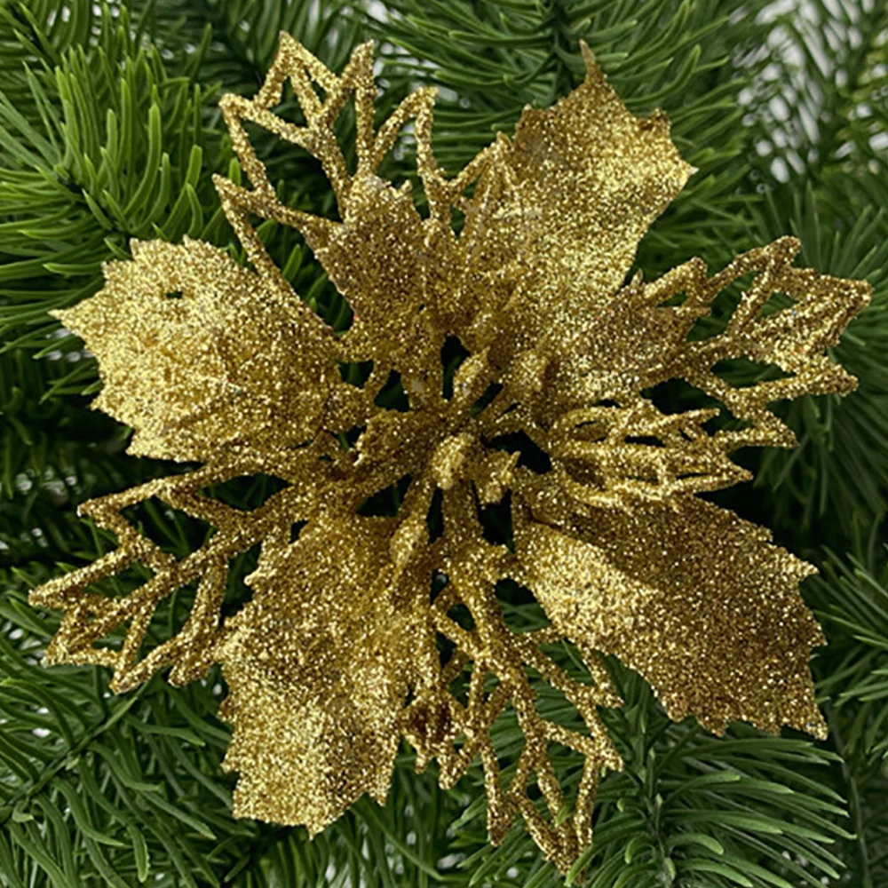 16 см блестящие цветы для рождественской елки, полый искусственный ...