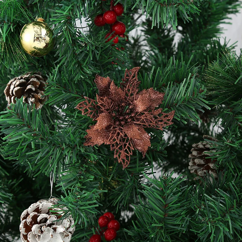 Искусственные Рождественские цветы, блестящие искусственные цветы, ...