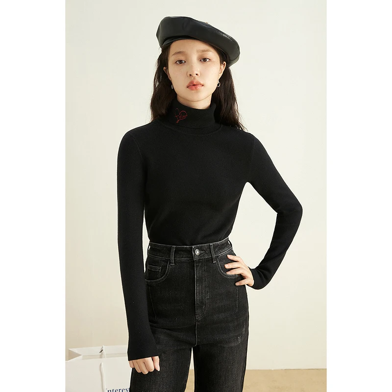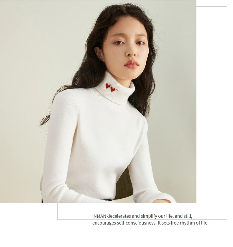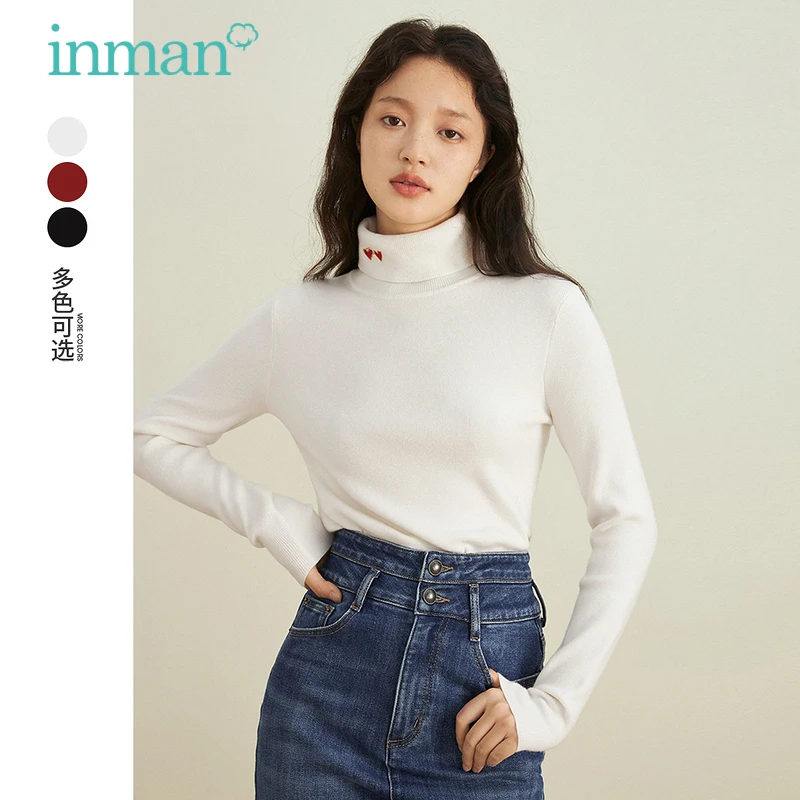 INMAN женский свитер осень-зима винтажный минималистичный с вышивкой водолазка тонкий эластичный разноцветный вязаный пуловер Топ