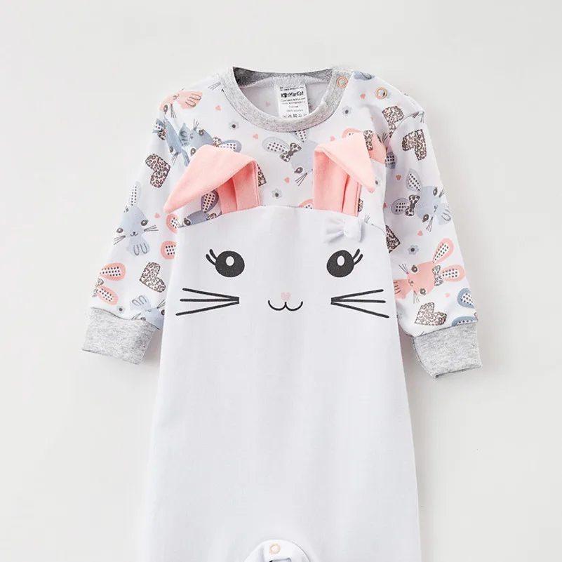Комбинезон для новорожденных (0 - 12м.),одежда для детей, 100% хлопок зайчики котмаркот кнопки 6591068