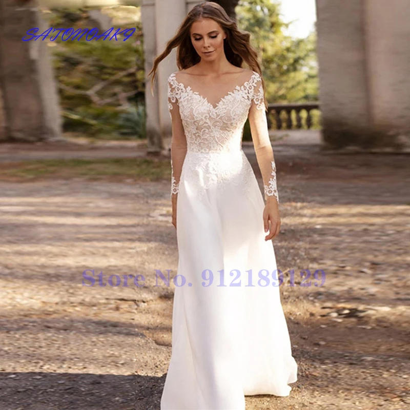 Женское свадебное платье с длинным рукавом, ТРАПЕЦИЕВИДНОЕ ПЛАТЬЕ в...