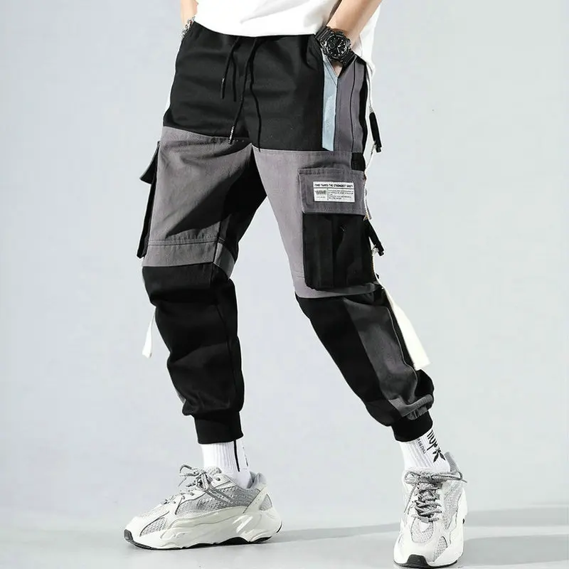Джоггеры-шаровары с лентами, мужские брюки-карго, уличная одежда 2020, повседневные спортивные брюки в стиле хип-хоп с карманами, мужские Модные брюки в стиле Харадзюку
