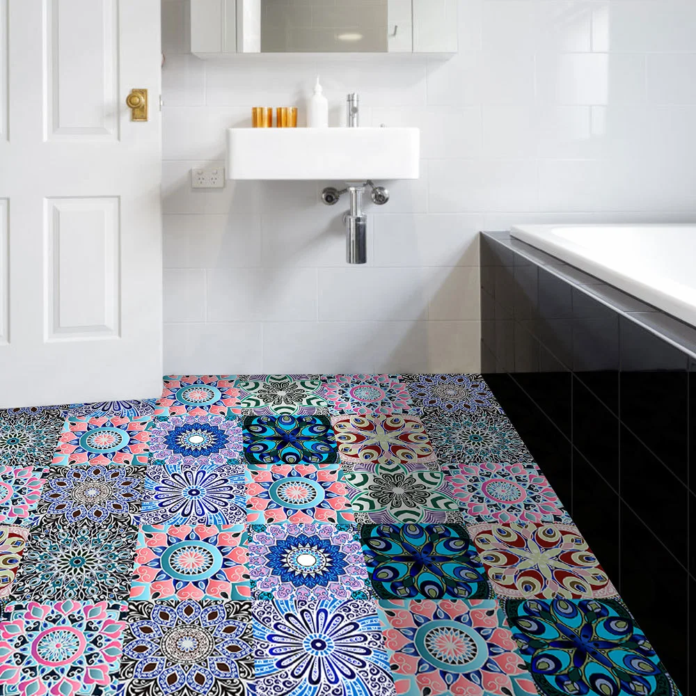Черно-белый узор, матовая поверхность, наклейка на пол, клейкая плитка, декоративная пленка для плиткиземли в кухне, ванной, нескользящая
