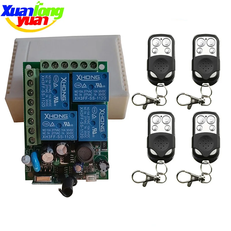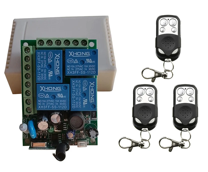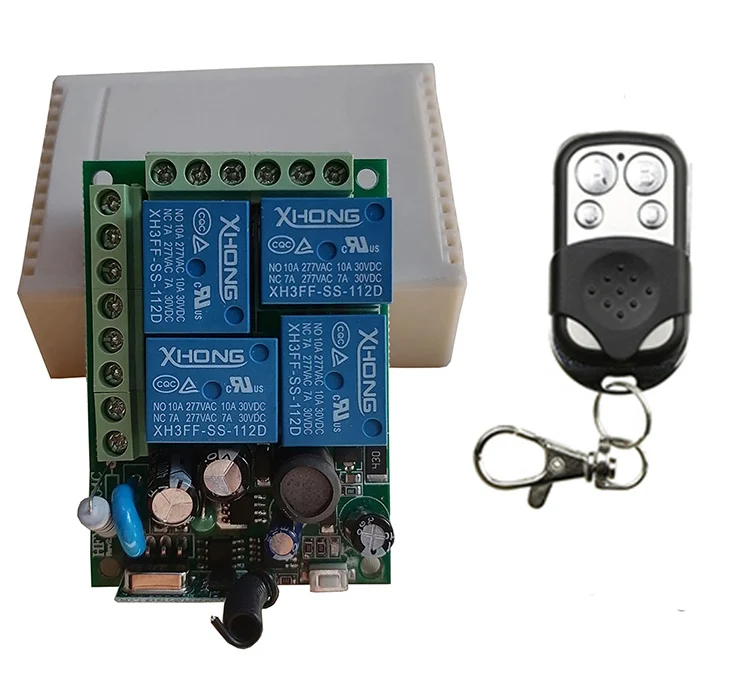Универсальный беспроводной пульт дистанционного управления, 433 МГц, В переменного тока, 4 канала, релейный приемник и передатчик для универсального управления гаражными дверями и воротами