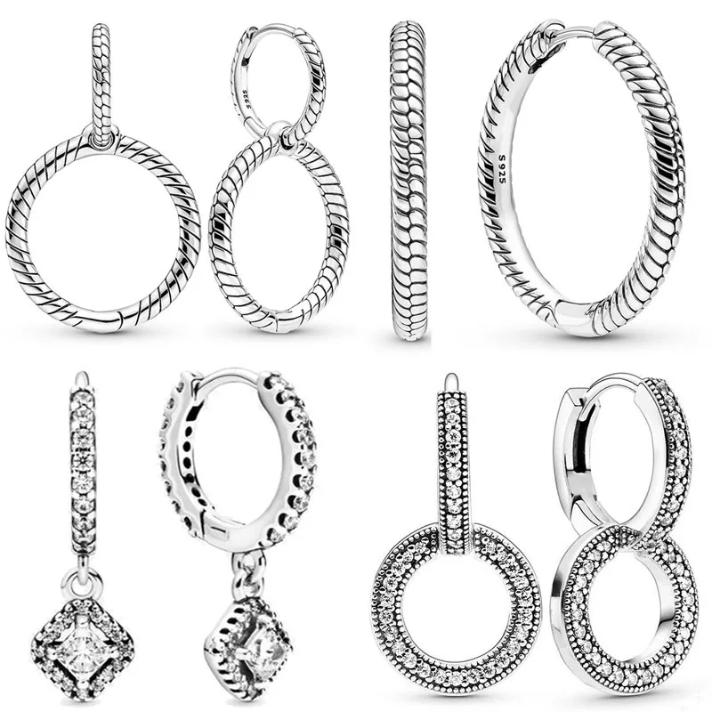 Новые серьги-кольца из искусственного серебра Pandora, серьги-кольц...