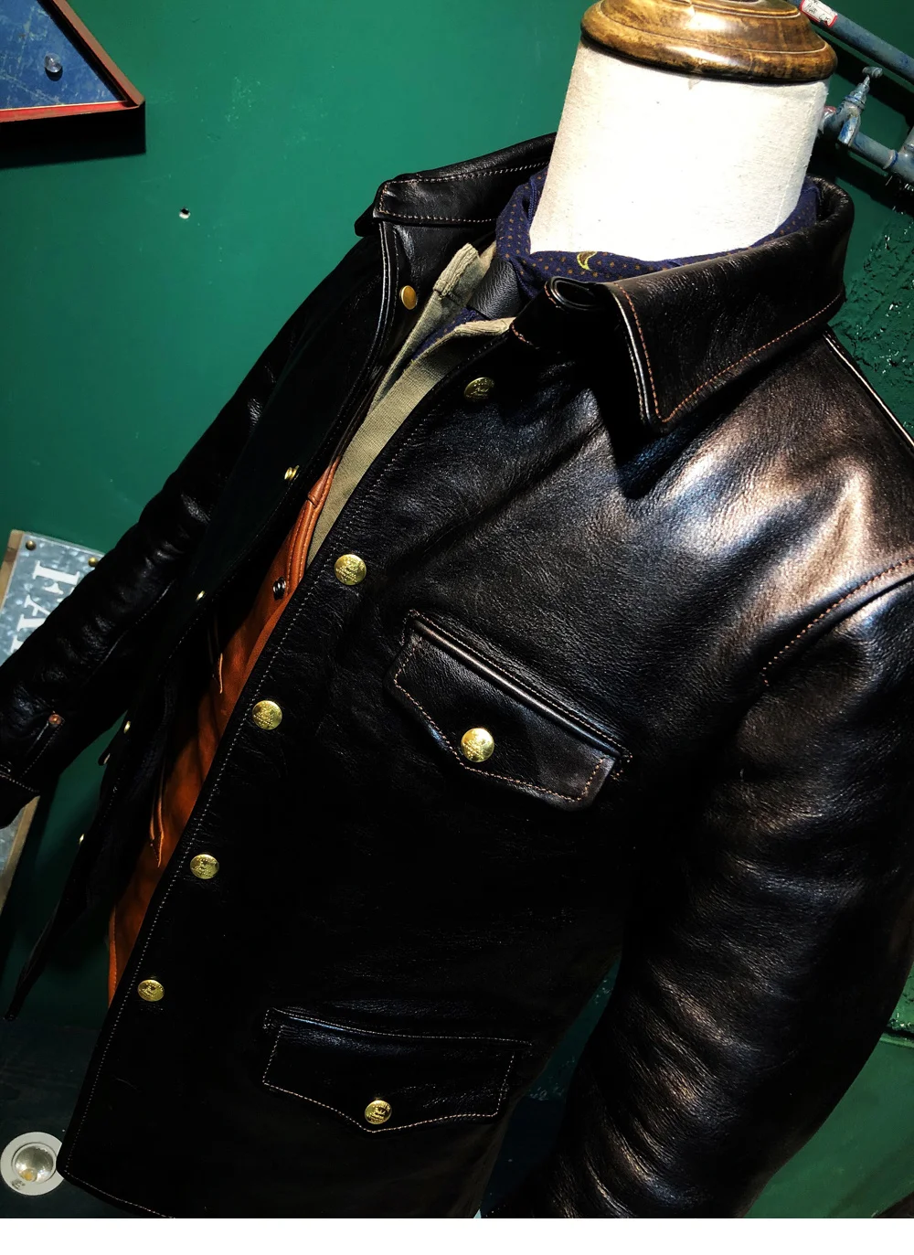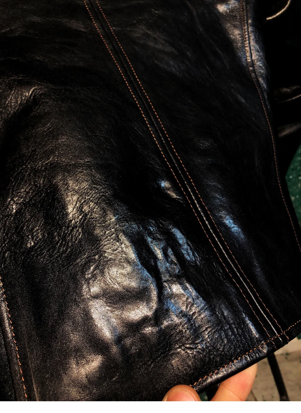 CDJ-8 Азиатский размер супер высшее качество тяжелая натуральная японская лошадиная кожа тонкая Классическая лошадиная Скрытая стильная куртка