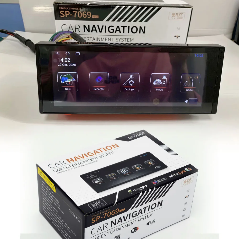 Модель изделия: SP-7069Процессор: 4 ядра Cortex-A7 1,3 ГГцЭкран: IPS 1280x480 LCD Full HDОперативная память: 1 Гб DDR3. 16 Гб/320B вспышкаВерсия Android: 8,1/10,0 Api27Поддерживаются только экраны MIPIUSB совместим с MP3. AAC. FLAC. MP4. MP5. МкВ. Летайте. JPEG6,9 дюймов цифровой ЖК-дисплей с умным емкостный сенсорный коврик сенсорный ЭкранВстроенный fm-тюнер (высокое качество. Супер чистый)Ссылка на телефон-Прямое управление через USB для iOS и Android телефоновBluetooth GPS WIFI радио усилитель мощности MP5 мобильный телефон подключение, AHD astern Sight. Виртуальная кнопкаПоддержка подключения внешних устройств: DVR / camera / DAB / CarPlay / TPMS / OBD II