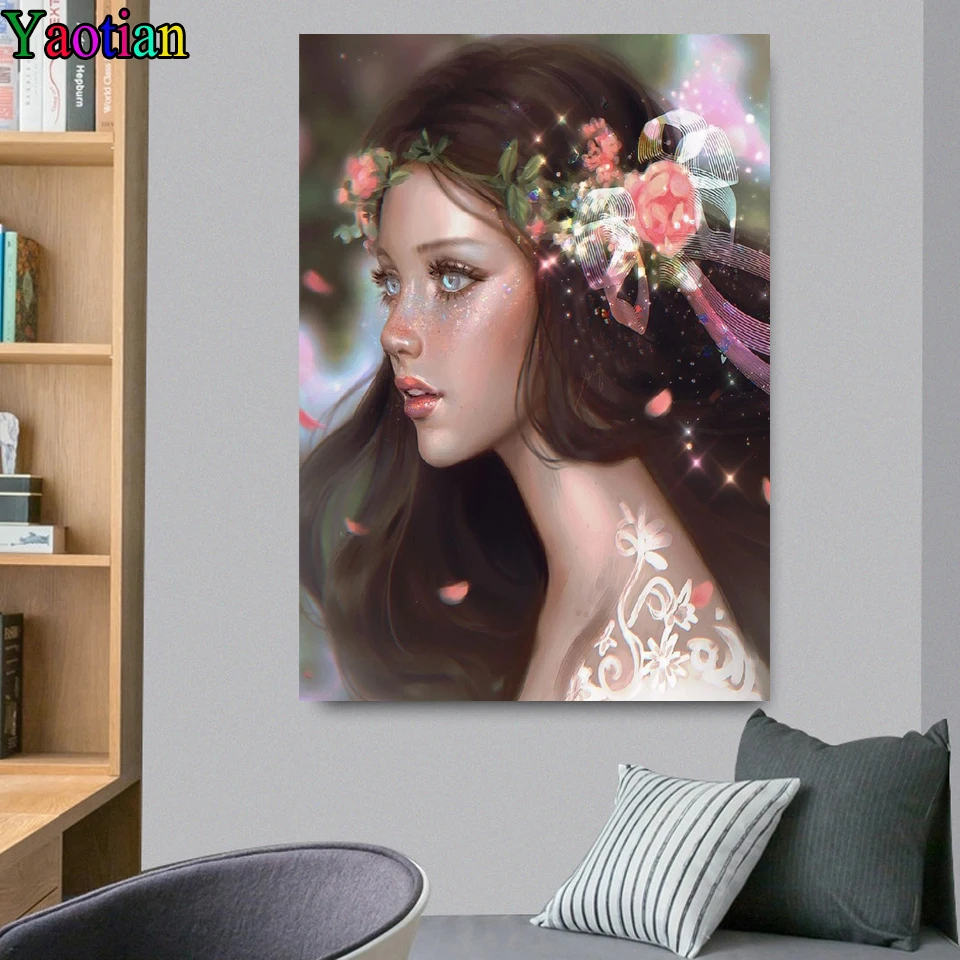 Алмазная живопись 5D сделай сам, картина с красивой девушкой, принцессой, поделки, вышивка крестиком, полноразмерная круглая картина, домашний декор, подарок