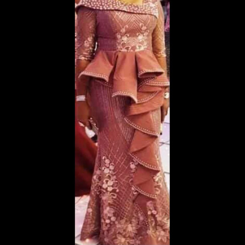 Платье женское вечернее с юбкой годе, баской и длинным рукавом