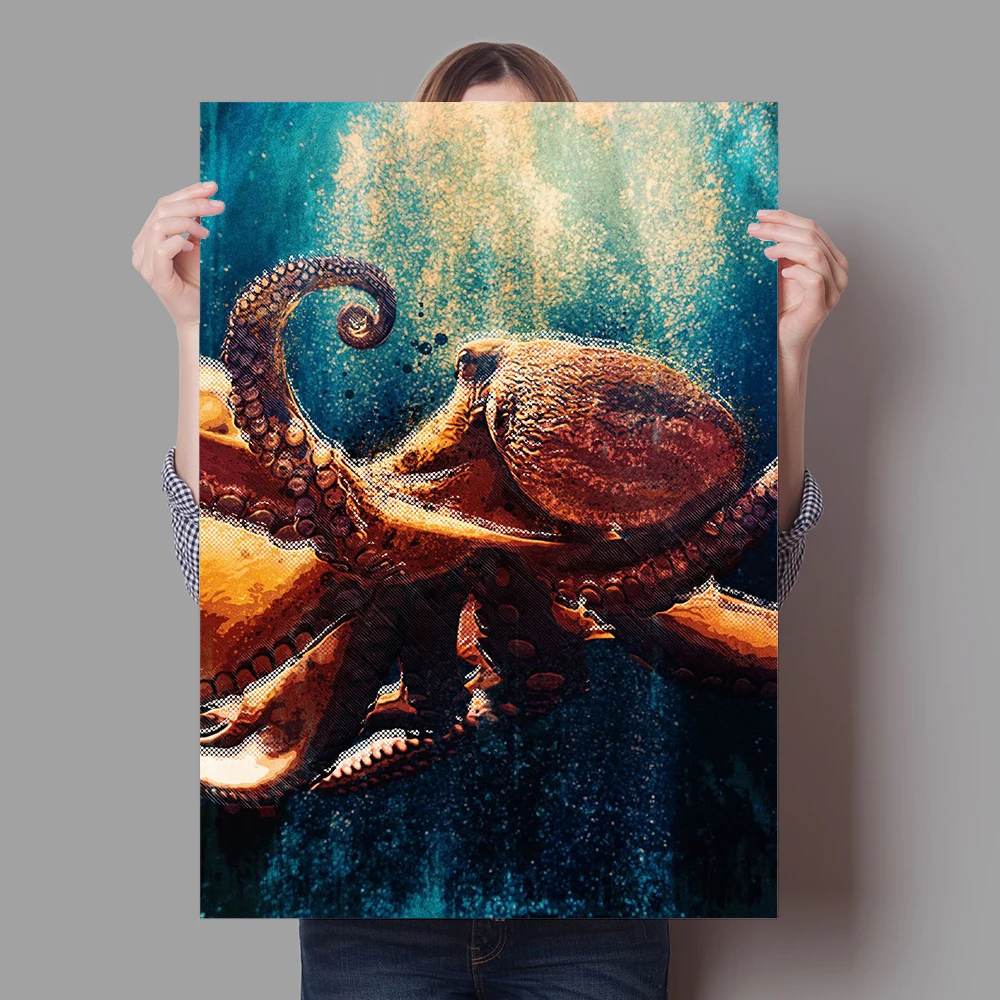 Постер морской жизни, черепаха, Акула, осьминог, морские животные, холст, живопись, Настенная картина, домашний декор для гостиной, аквариума