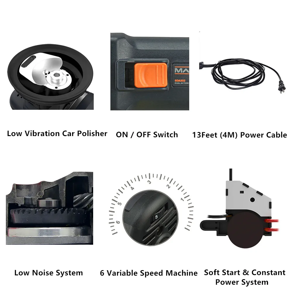 Прекрасный подарок для автолюбителей и автолюбителей1. Эти машины изготавливаются для автомобильного детализатора, а также активного автолюбителя, который хочет безопасно выполнить небольшую коррекцию краски на транспортном средстве. Орбитальные полировальные средства очень безопасны для использования на транспортных средствах, потому что они не оставляют вихревых следов, и они не будут гореть через краску/прозрачное покрытие.2,9 мм орбита для эффективного и быстрого удаления дефектов и царапин.3. Функция мягкого пуска предотвращает потерю продуктов по уходу и обеспечивает контролируемое ускорение.
