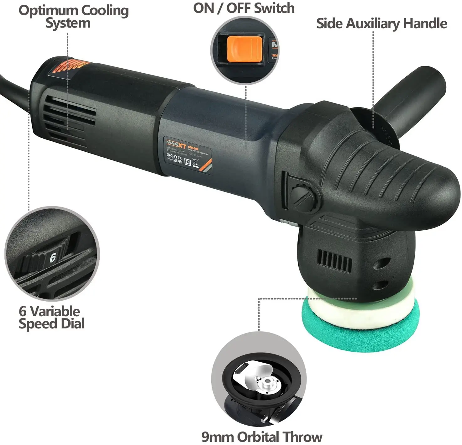Исключительный контроль в сложных приложениях, таких как кромка и профильная работа1. 9 мм орбита буфера позволяет пользователю исключительный контроль в сложных приложений, таких как кромки и профиль работы, что делает идеальную детализацию легкой операции для новичков и профессионалов.2. С мощным двигателем 710 Вт (6A) можно удалять царапины и вихревые пятна при использовании в сочетании с машинным полированием. Это также идеально подходит для нанесения глазури, герметиков и восков. Эта машина была создана для использования с 3 " (80 мм) подушечками, поэтому была взвешена с учетом этого, что делает ее гораздо более гладкой.3.MAXXT автомобильный буфер может использоваться с мелкими зернистыми абразивами для ускорения коррекционных операций.4.MAXXT полировальная машина идеально подходит для всех полировальных операций в труднодоступных зонах.