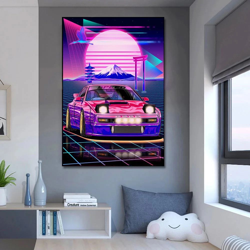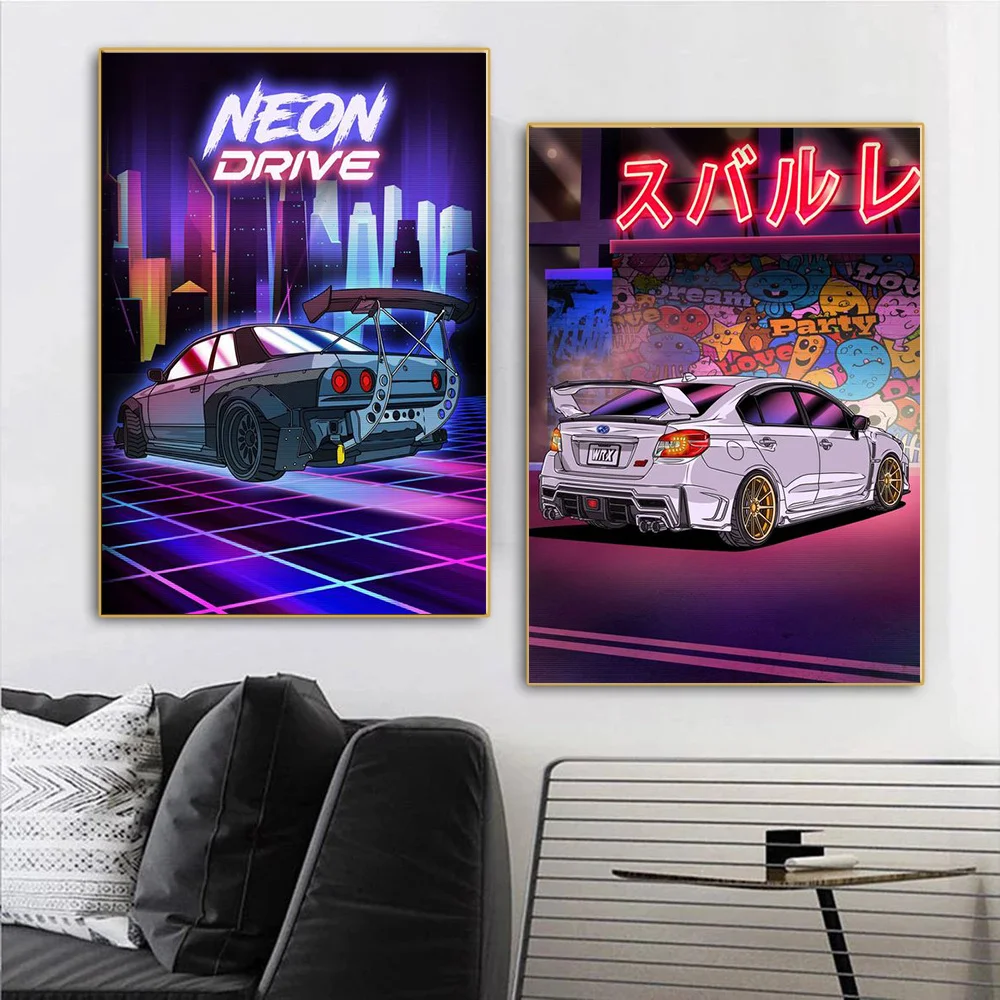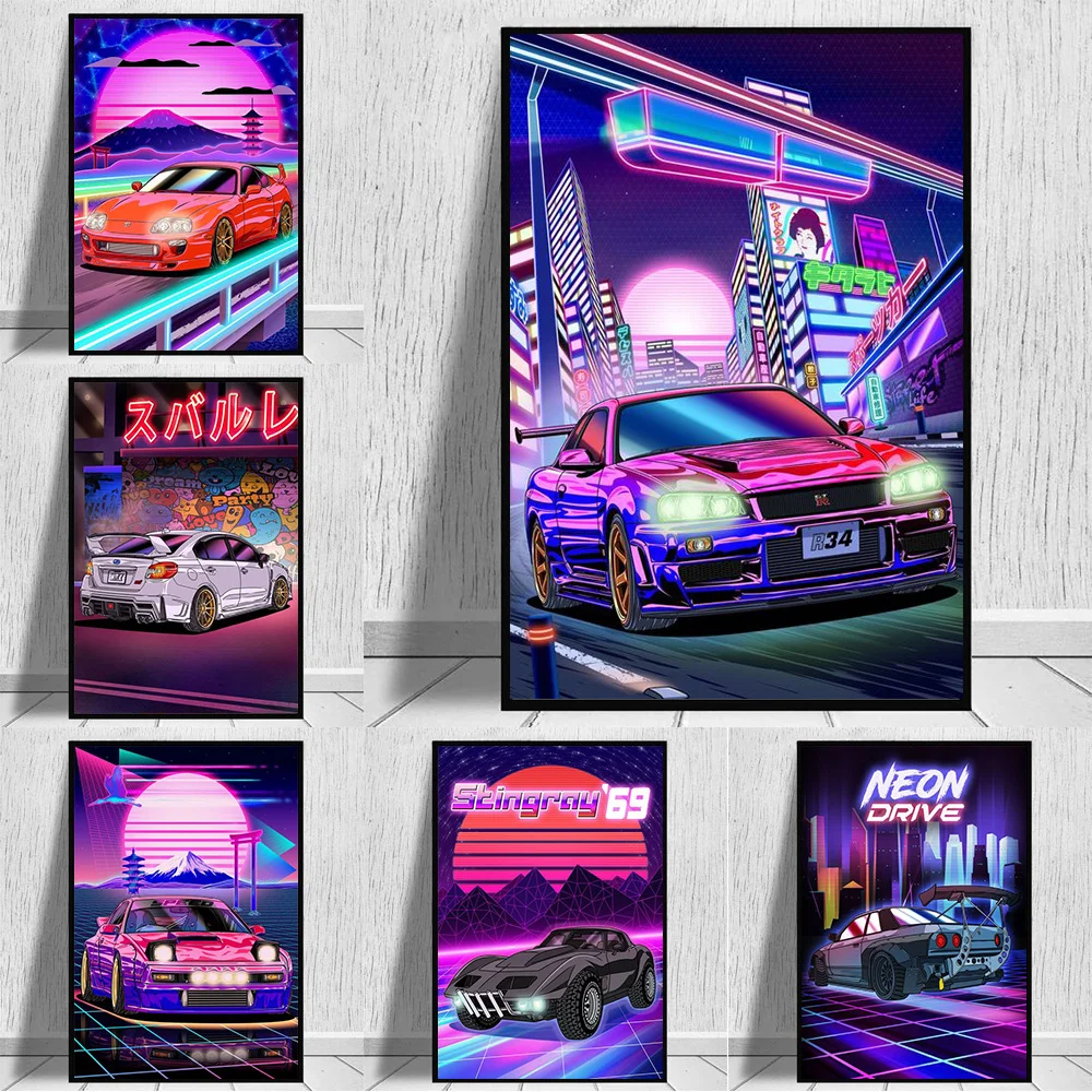 Модные супердневные принты на холсте, неоновые настенные плакаты для гонок, зал, спальня, домашний декор