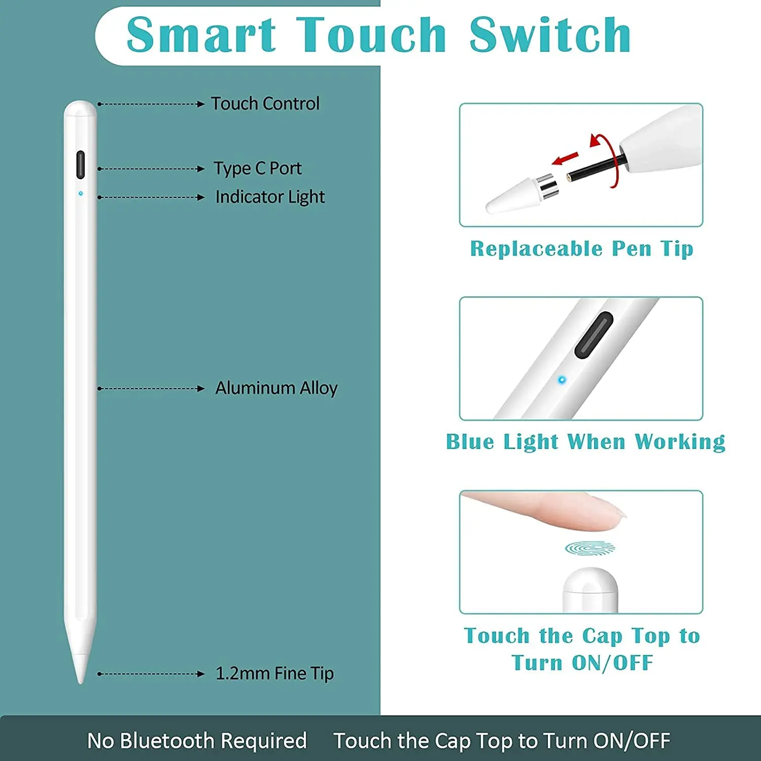 【Precise Active Pen 】-это стилус был разработан с 1,2 мм POM наконечник как официальный ipad карандаш материал наконечника, более прочный и чувствительности. Ощущается как настоящая ручка, дает вам более точный сигнал, более удобно держать в режиме Письма/рисования. Не ломается, не ломается, не проскакивает, не царапается! 2 сменных наконечника, входящих в комплект, значительно продлевают срок службы стилуса.【Широкая Совместимость 】-один стилус для всех ваших цифровых продуктов, совместим с большинством емкостных устройств с сенсорным экраном, включая iPad,iPad Pro/Mini/Air,iPhone12/11/X/XR/XS/8/7/6/6/Plus, без чувствительности к давлению.【Длительное время и Мощность Saving】-встроенный аккумулятор и с разъемом спецификации USB Type-C зарядки, только 1-1,5 часов время зарядки и поддержка до 20 часов непрерывной работы или 365 дней время работы в режиме ожидания. Стилус будет автоматически выключен через 5 минут после бездействия, чтобы сохранить питание.【Умная сенсорный активированный 】-это стилус для iPad карандаш по беспроводной сети через Wi-Fi или требуется приложение, просто коснитесь верхняя крышка включения (синий светильник), и вы можете нарисовать или написать на вашем сенсорный экран устройства, создайте свою собственную возможность с помощью этого стилуса в любое время и в любом месте!【 What You Get】- 1 * Активная ручка-стилус, 2 * сменные наконечники, 1 * кабель USB Type-C, 1 * Руководство пользователя