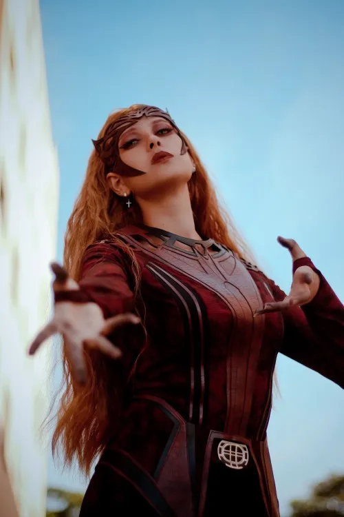 Женский парик для Хэллоуина, синтетический длинный коричневый волнистый парик для косплея ведьмы Wanda Maximoff, повязка на голову и маска для косплея