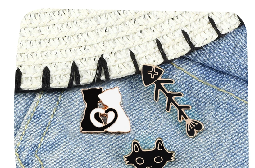 Броши для влюбленных милых кошек, эмалевые булавки в виде рыбьей ко...