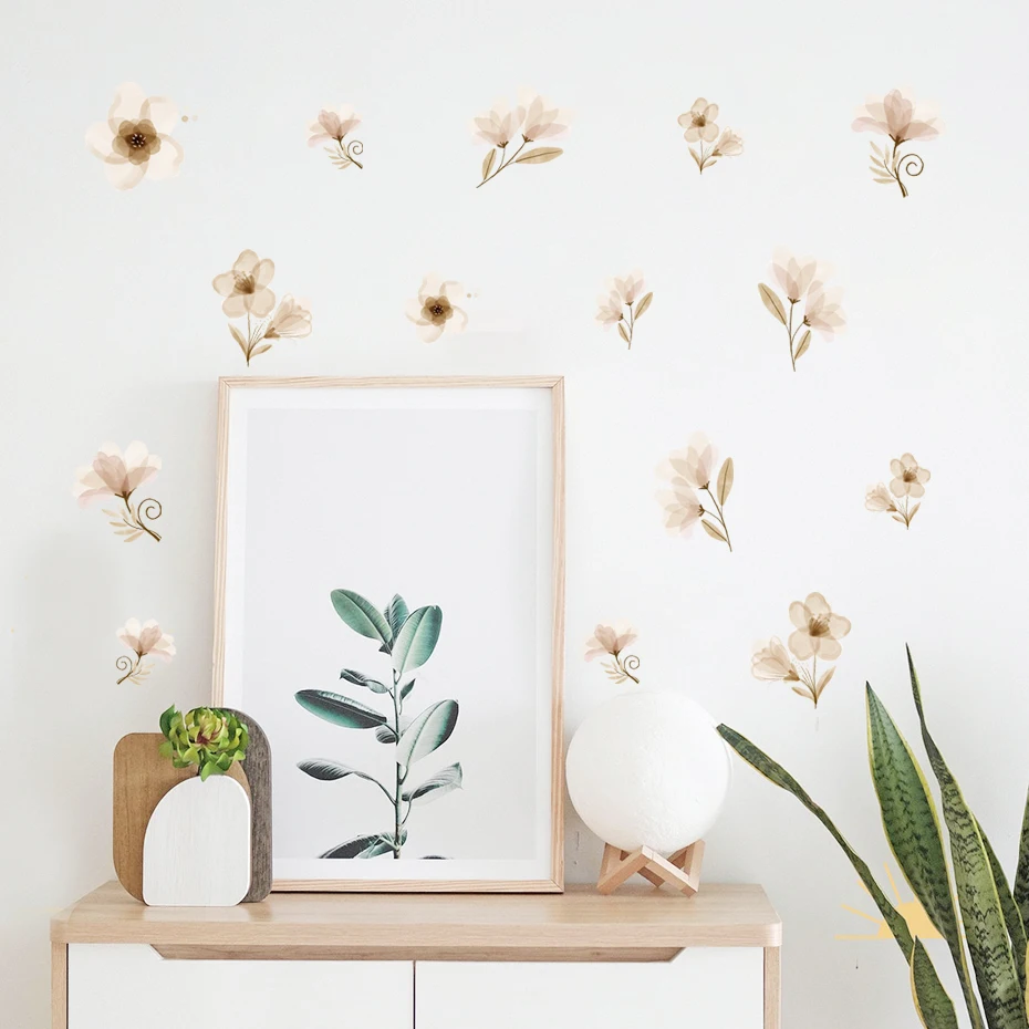 Цветочные растительные бабочки акварельные настенные наклейки для д...