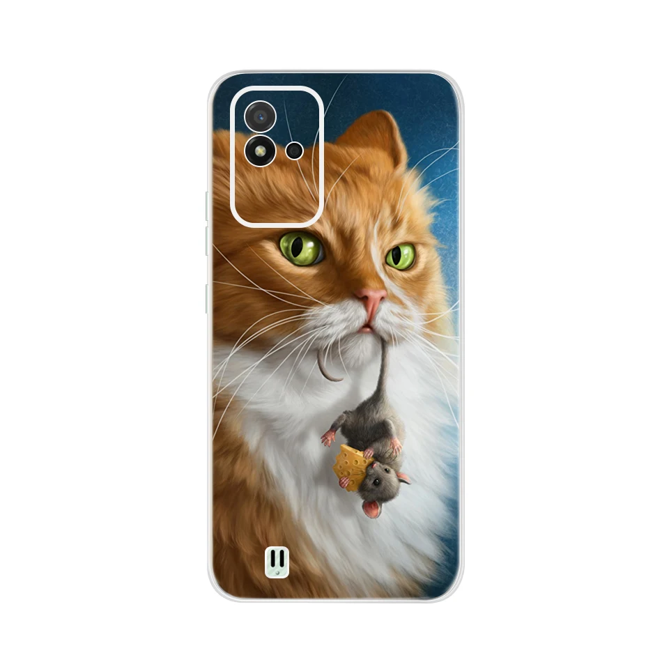 Чехол для Realme Narzo 50i 6,5 ''с милым котом и бабочкой, мягкий с...