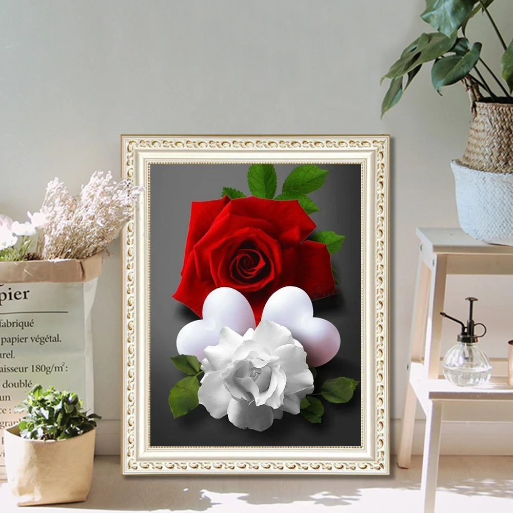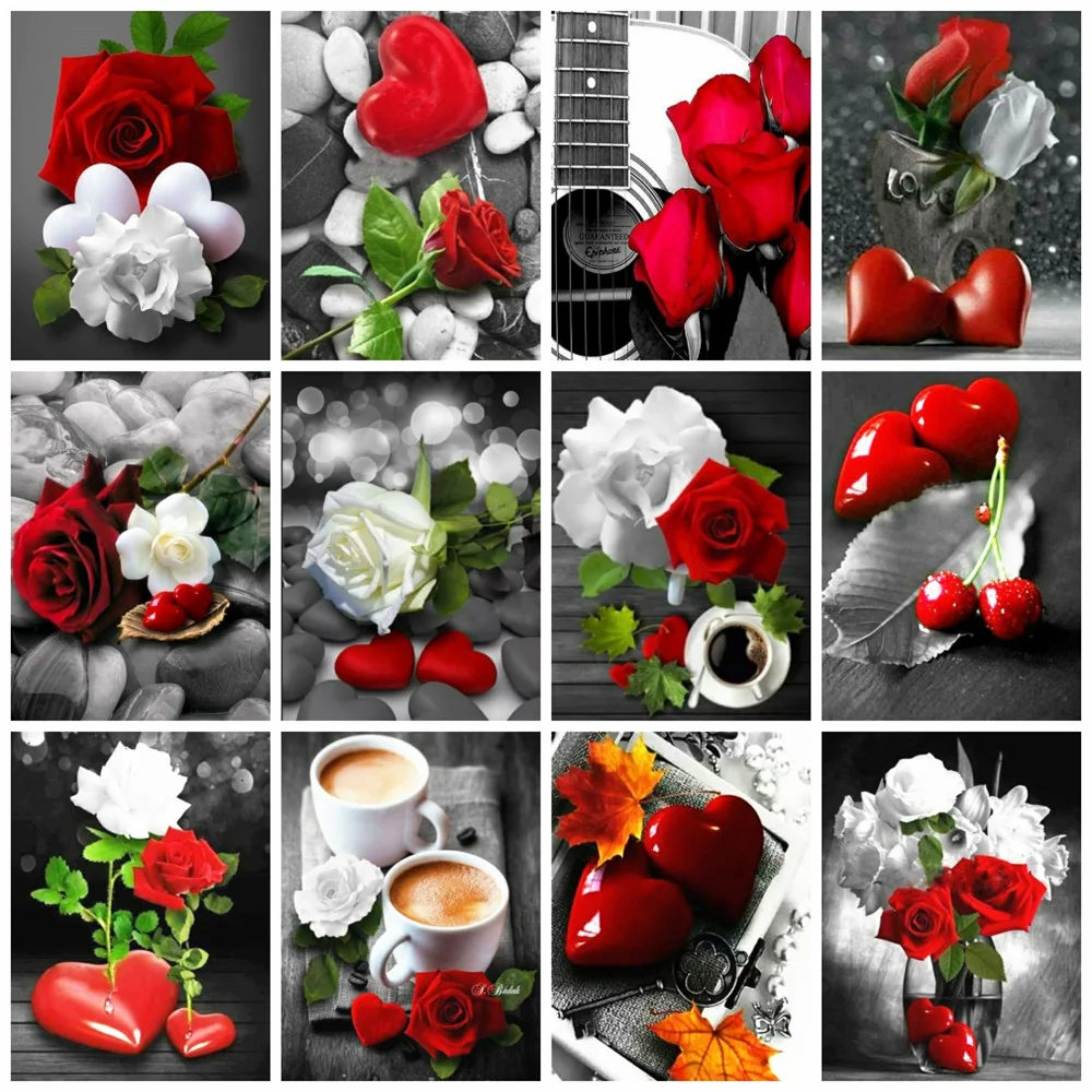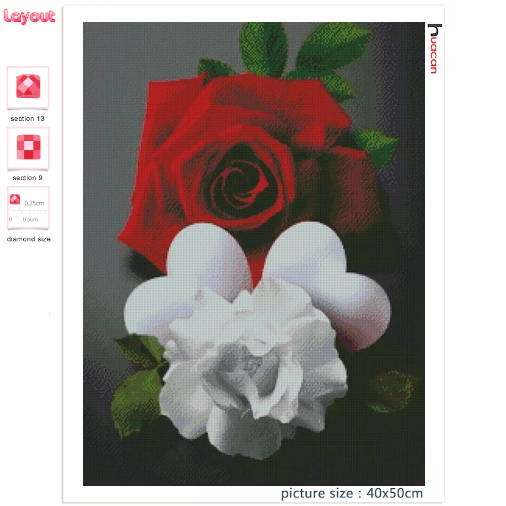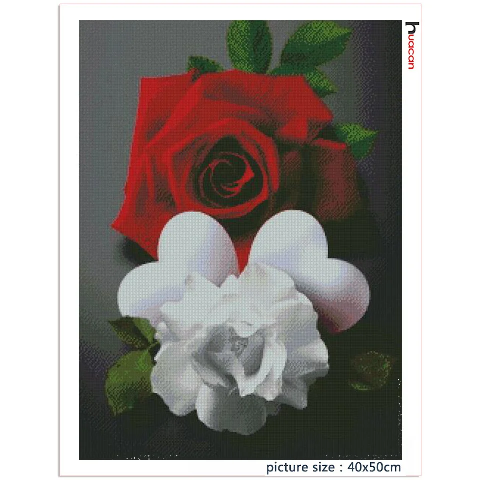 Huacan украшение для спальни алмазная живопись черный красный цветок Алмазная мозаика вышивка крестиком Сердце Роза цветочная картина для дома