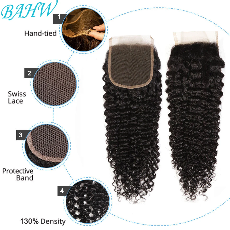 BAHW малайзийские кудрявые пряди с одеждой, человеческие волосы, пучки с застежкой, 3 пряди, кудряпряди с застежкой 4X4