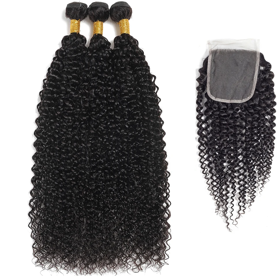 Бразильские волосы Джерри Керл пряди с закрытием бразильские волосы...