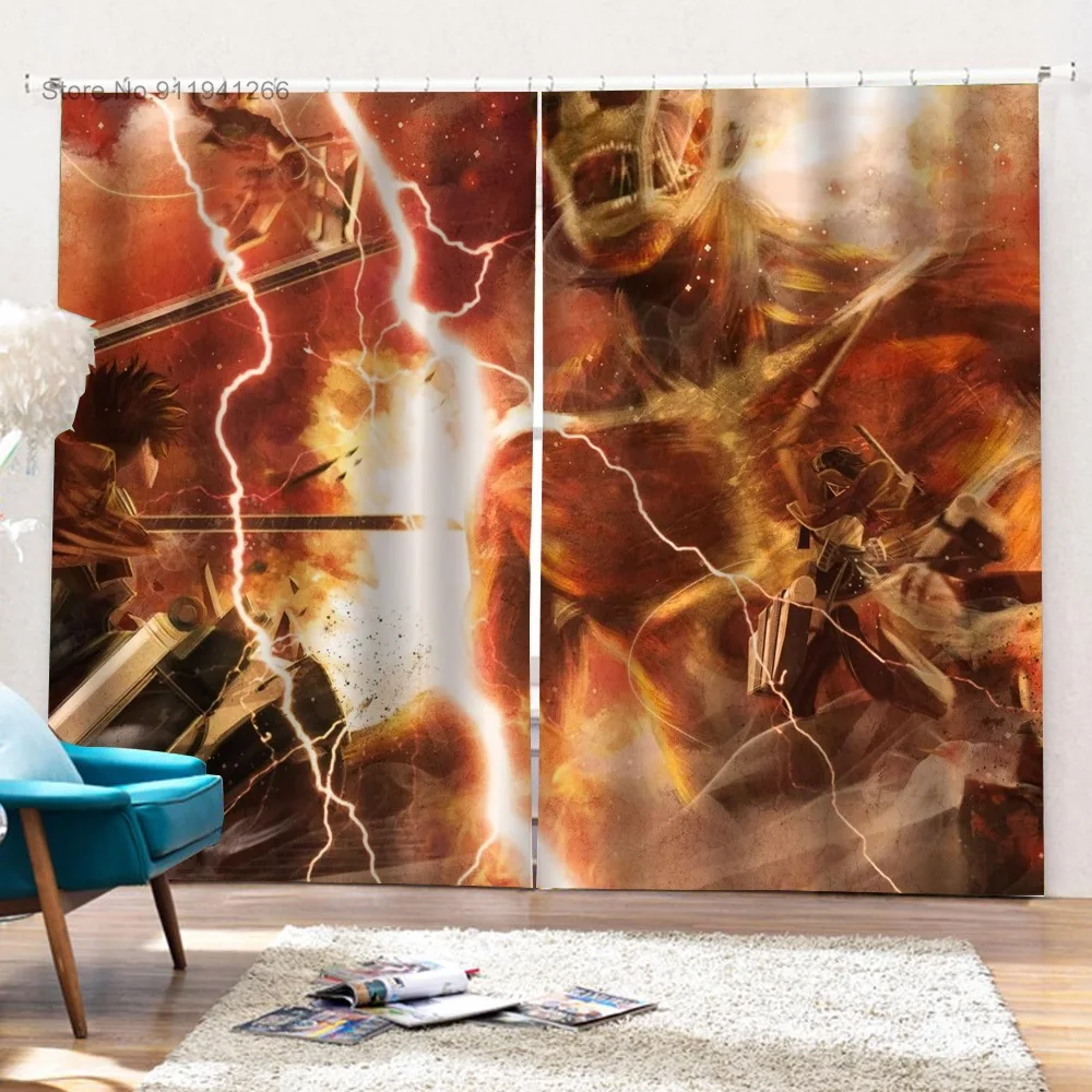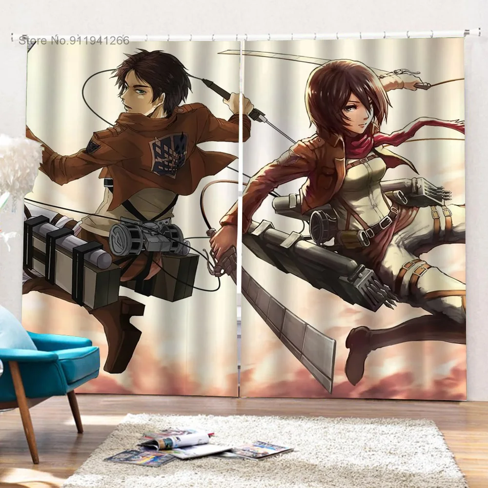 2 шт.комплект, занавески на окна с рисунком из аниме атака на Титанов