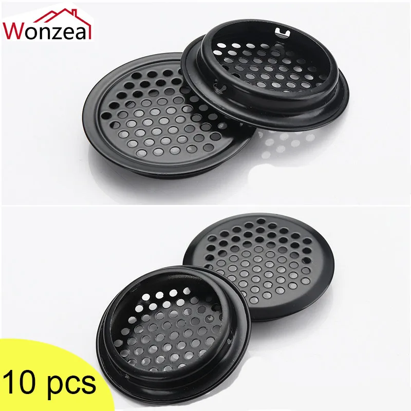 Сетчатые отверстия для шкафа, 10 шт.лот, круглые черныеСеребристые жалюзи для вентиляционных отверстий, вентиляционная крышка, фурнитура из нержавеющей стали вентиляционная решетка решетка вентиляционная
