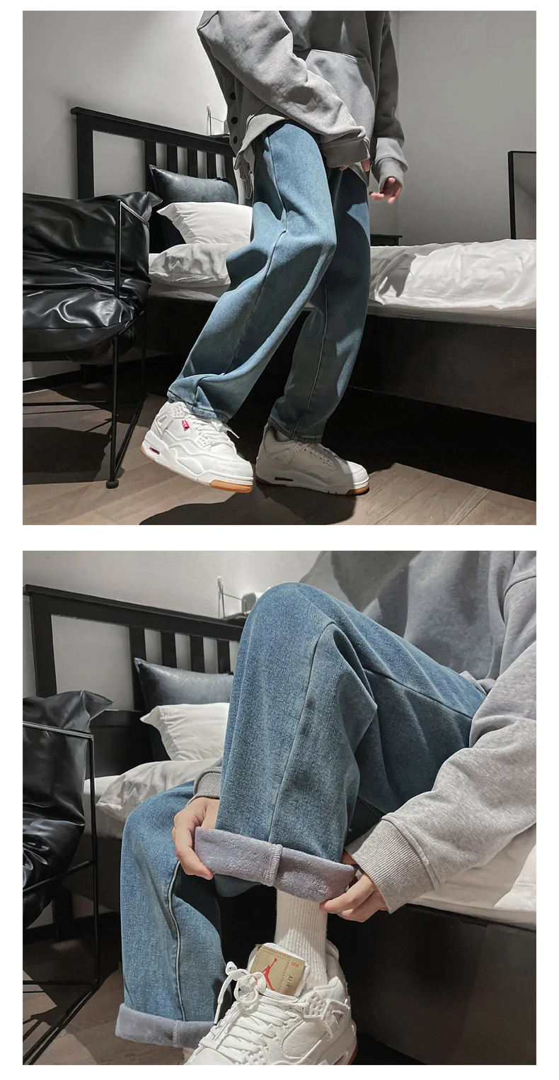 Privathinker флисовые Джинсы плотные теплые однотонные прямые свободные мужские джинсовые брюки винтажные повседневные зимние брюки для мужчин