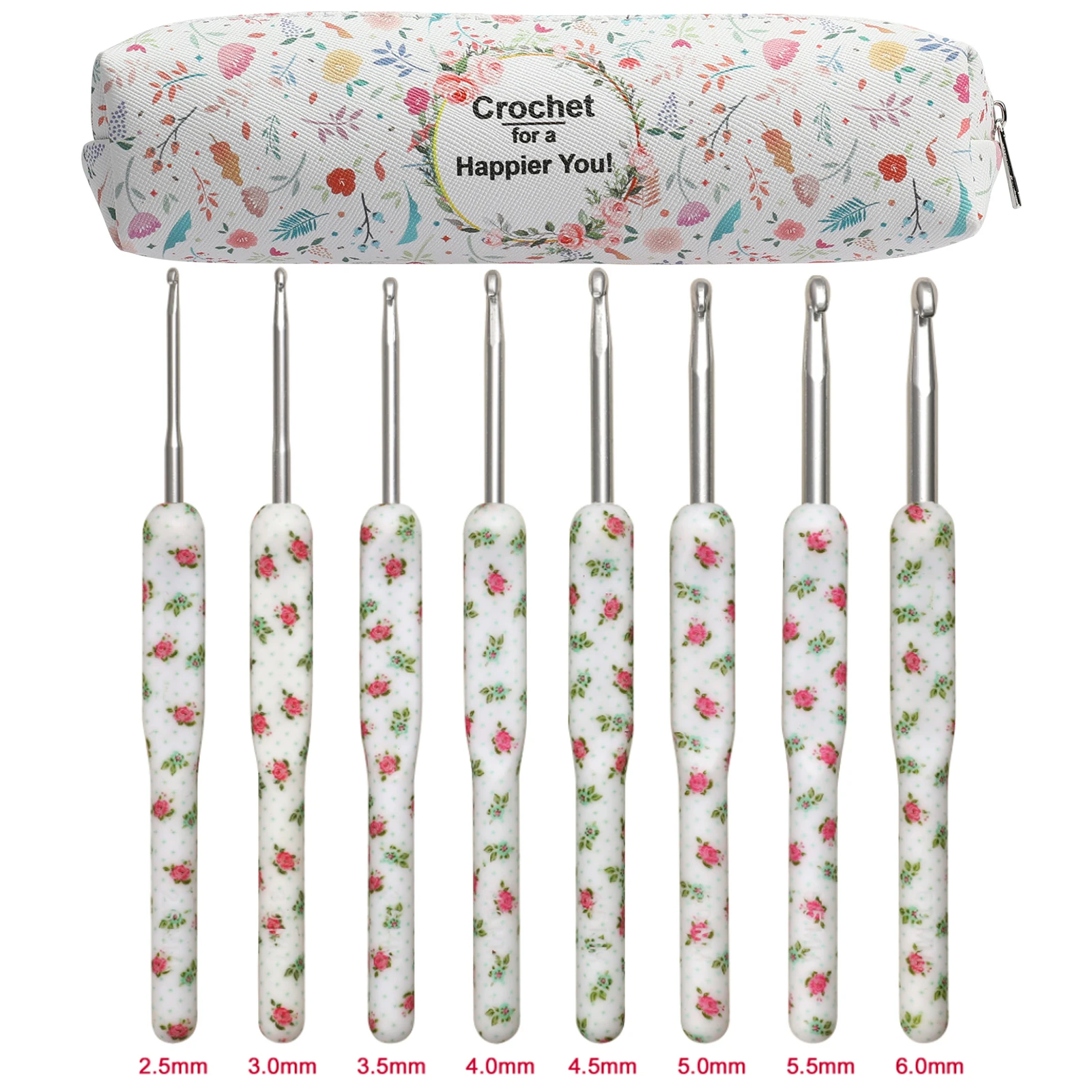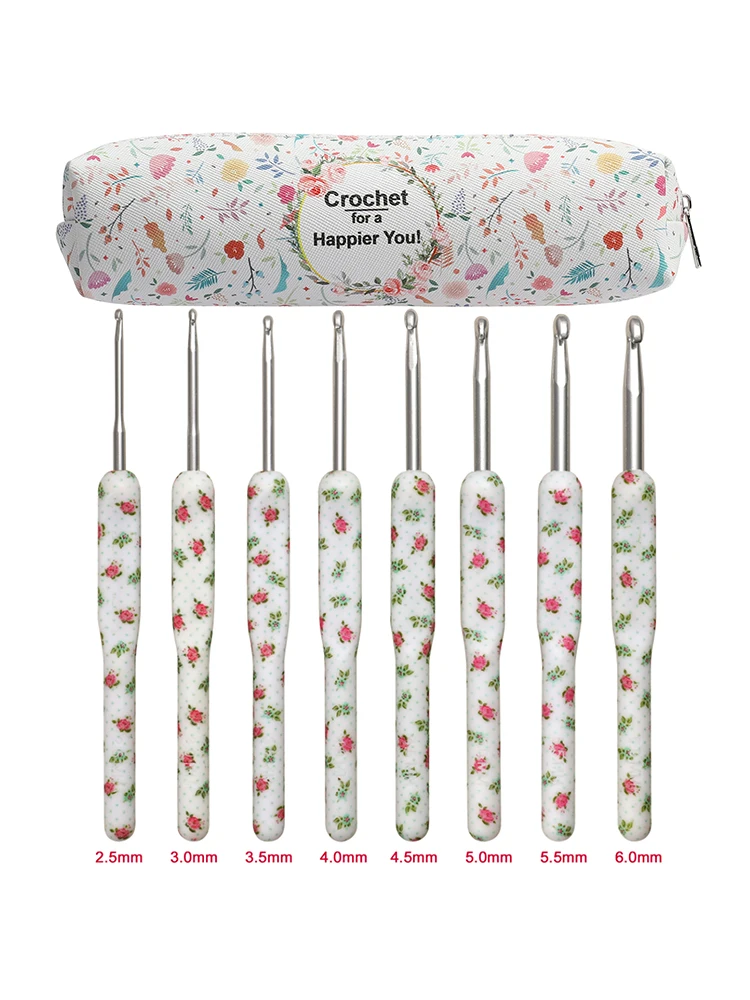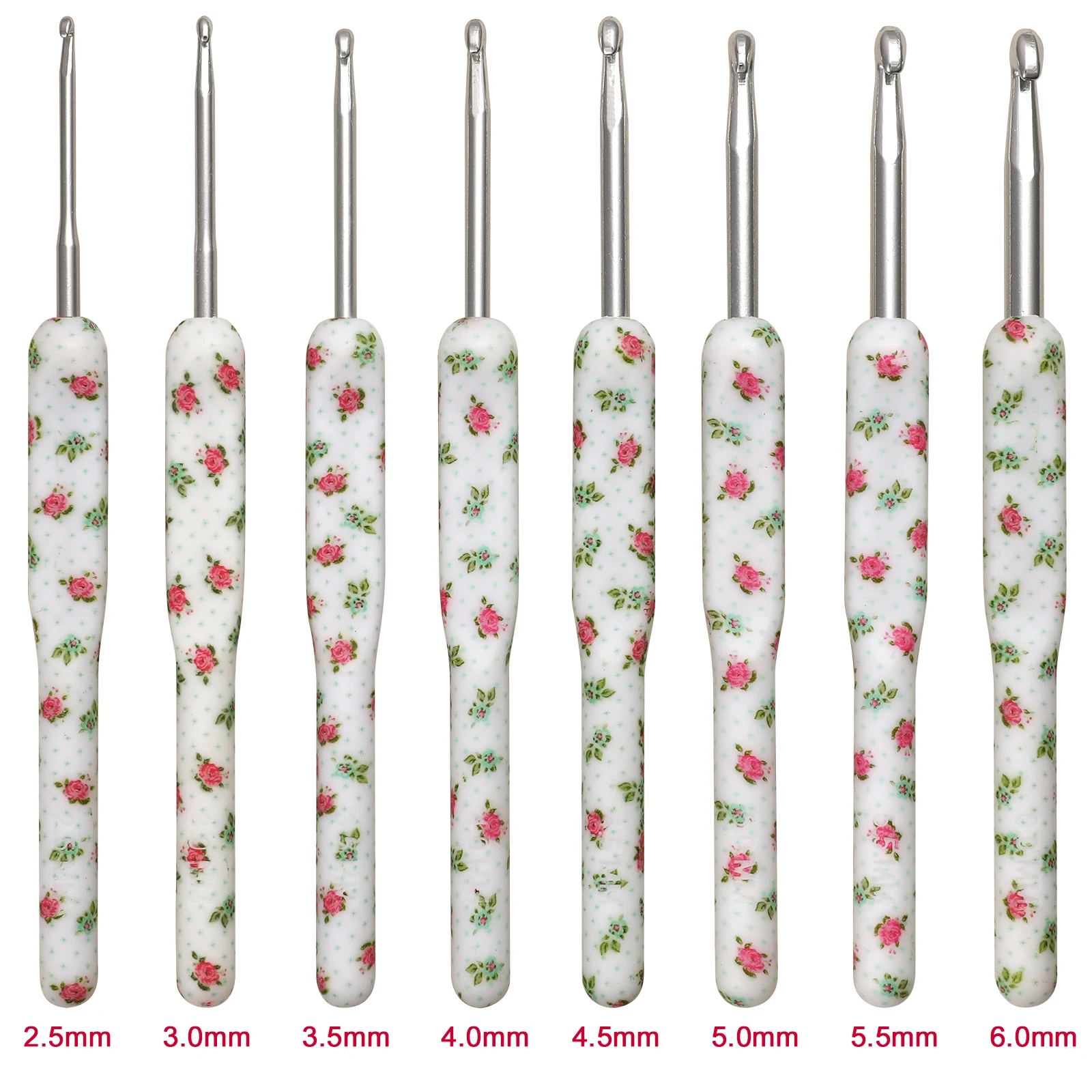 Новинка, набор мягких керамических крючков для вязания, 2,5-6,0 мм, набор алюминиевых крючков для вязания, белая ручка с цветами, вязальные спицы