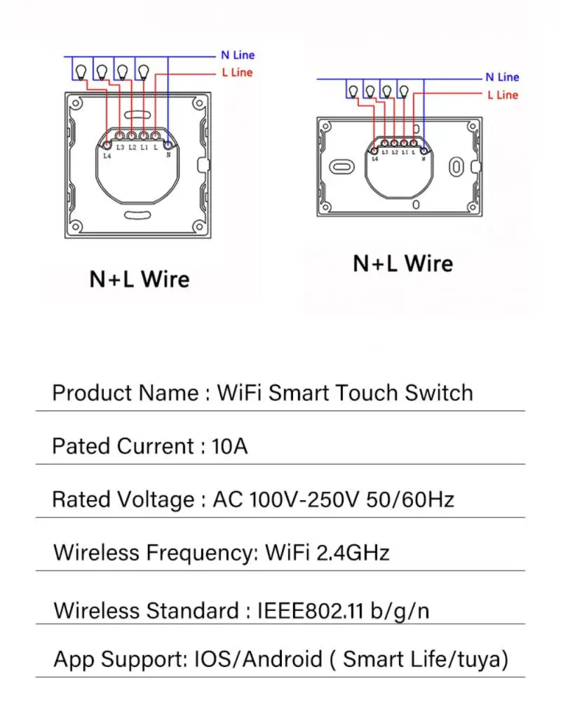 6. Нейтральный провод необходим в ваших коробках переключателей для правильной работы; Поддерживает только сеть 2,4G.