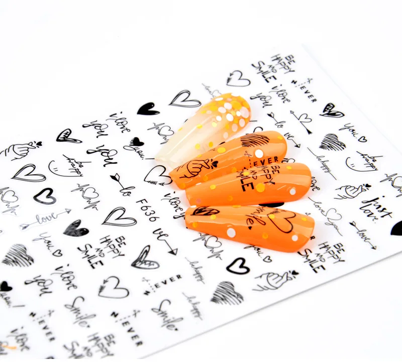 1 шт в форме сердца, с рисунком в виде букв 3D ногтей Стикеры абстр...