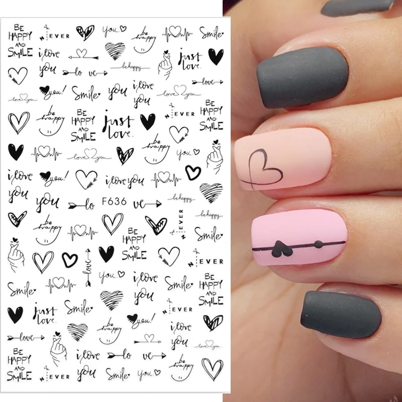 Наклейки для дизайна ногтей большого размера черные буквы сердце Ге...