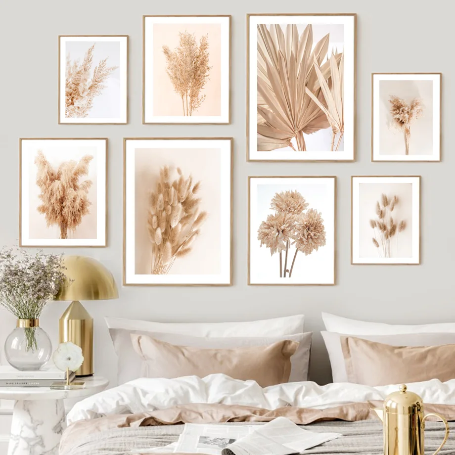 Скандинавский плакат бежевый листок пальмы Рид сушеный цветок Заячий хвост трава настенная Художественная печать холст Картина Декор картинки для гостиной