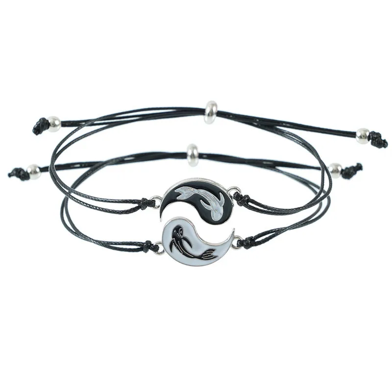 2 шт.компл. браслет для пар для женщин влюбленные тайчи Инь Янь Рыба ручной работы плетеная Черная веревка очаровательные ювелирные изделия дружбы подарок