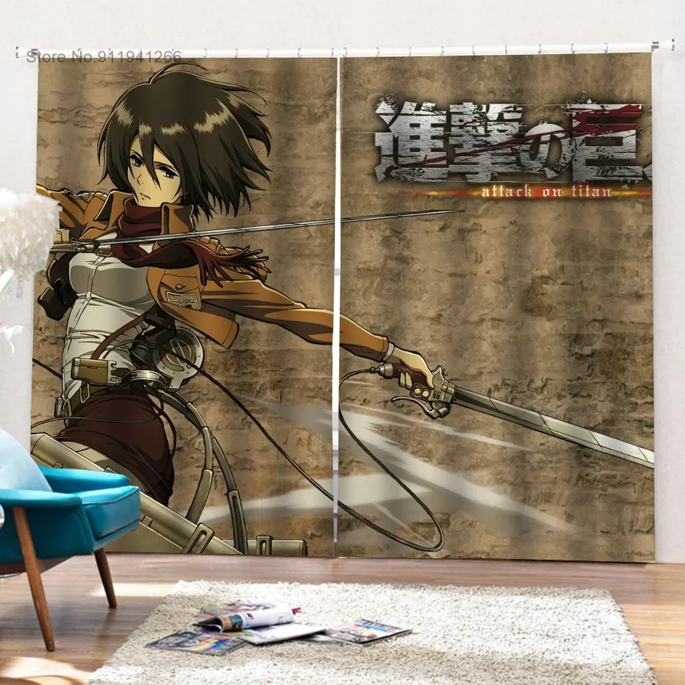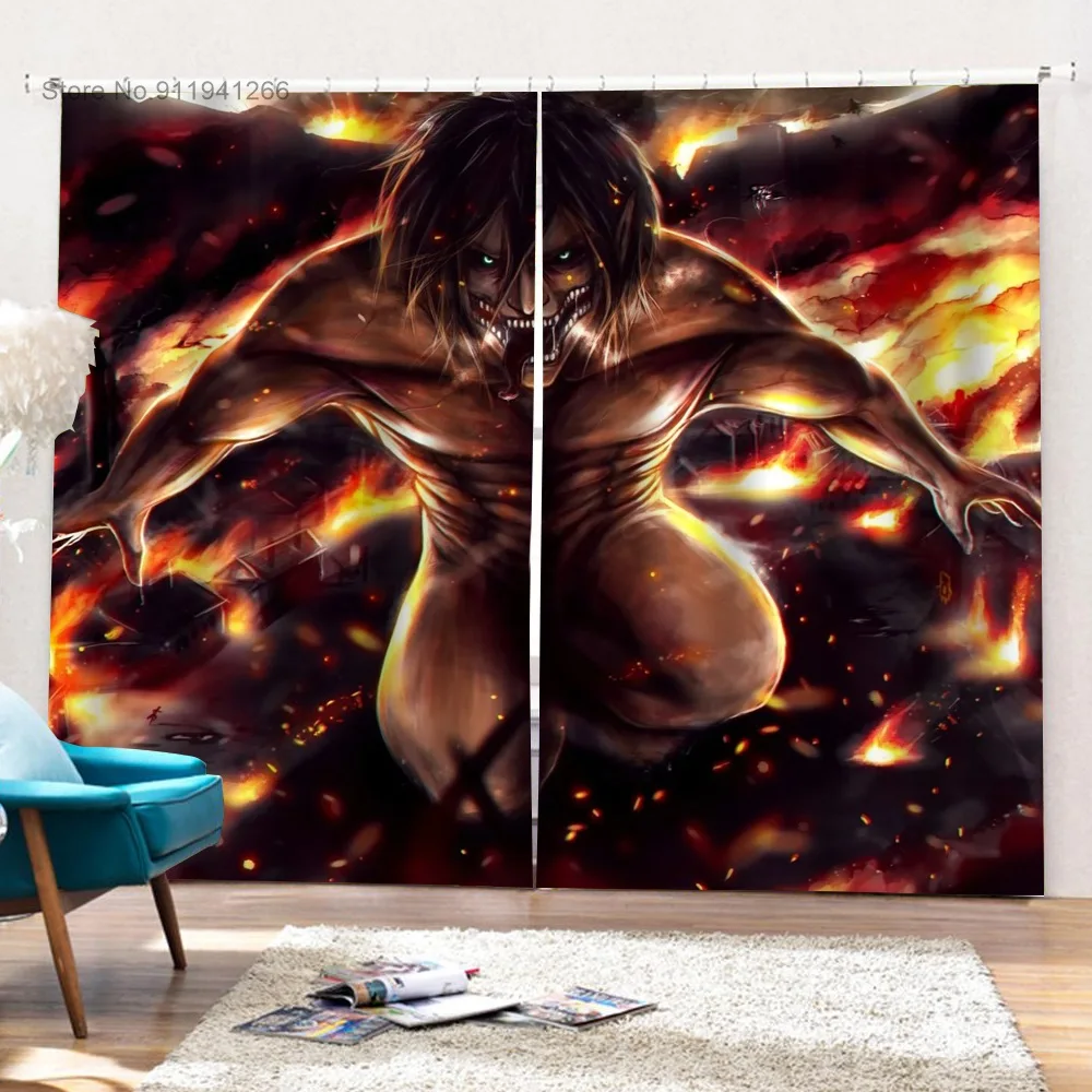 Затемняющие шторы с 2 панелями из аниме атака на Титанов, затемняющие термоизолированные украшения для спальни, домашний текстиль