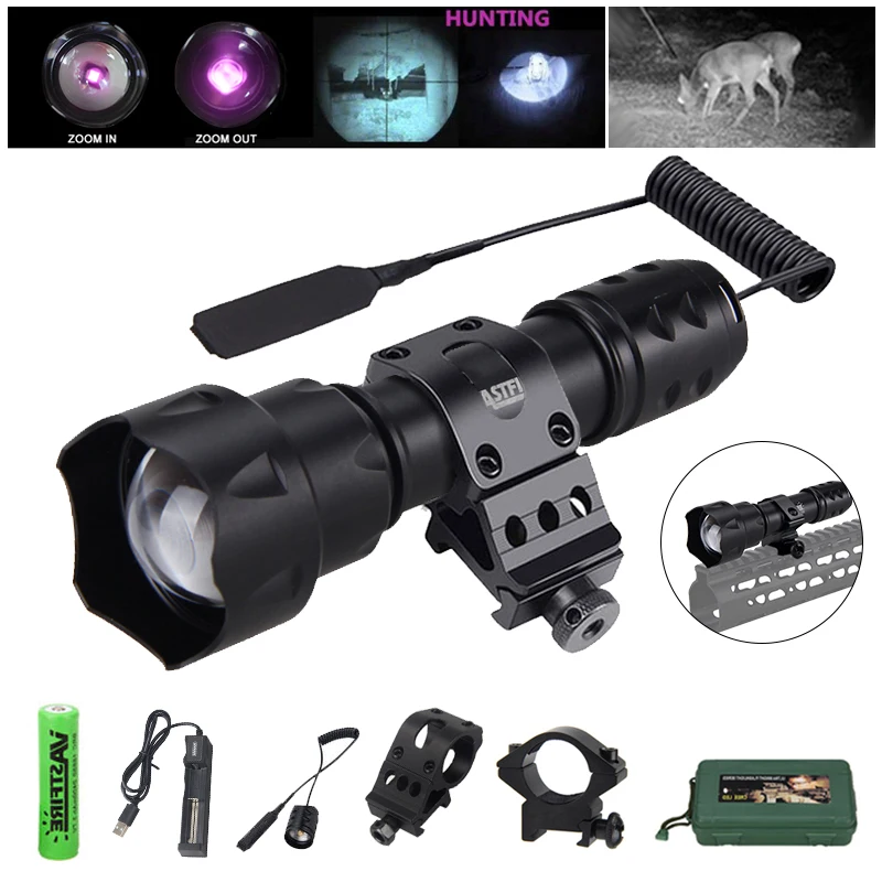 Водонепроницаемая ИК-вспышка ночного видения 18650 нм, масштабируемый фонарь, уличный тактический охотничий фонарь + аккумулятор + зарядное устройство + крепление + переключатель + коробка