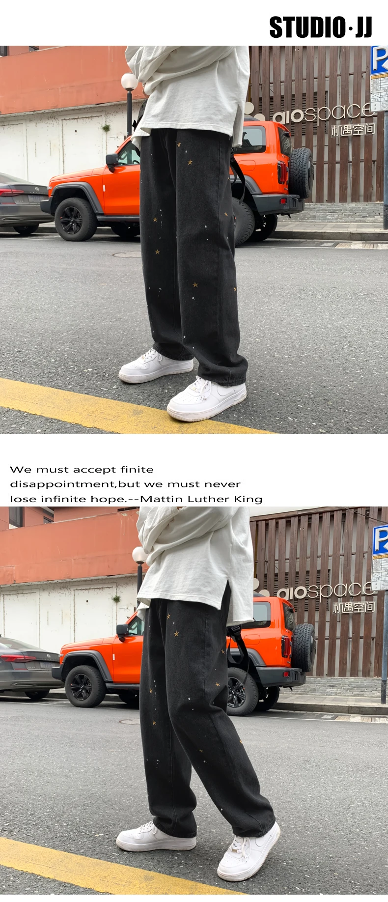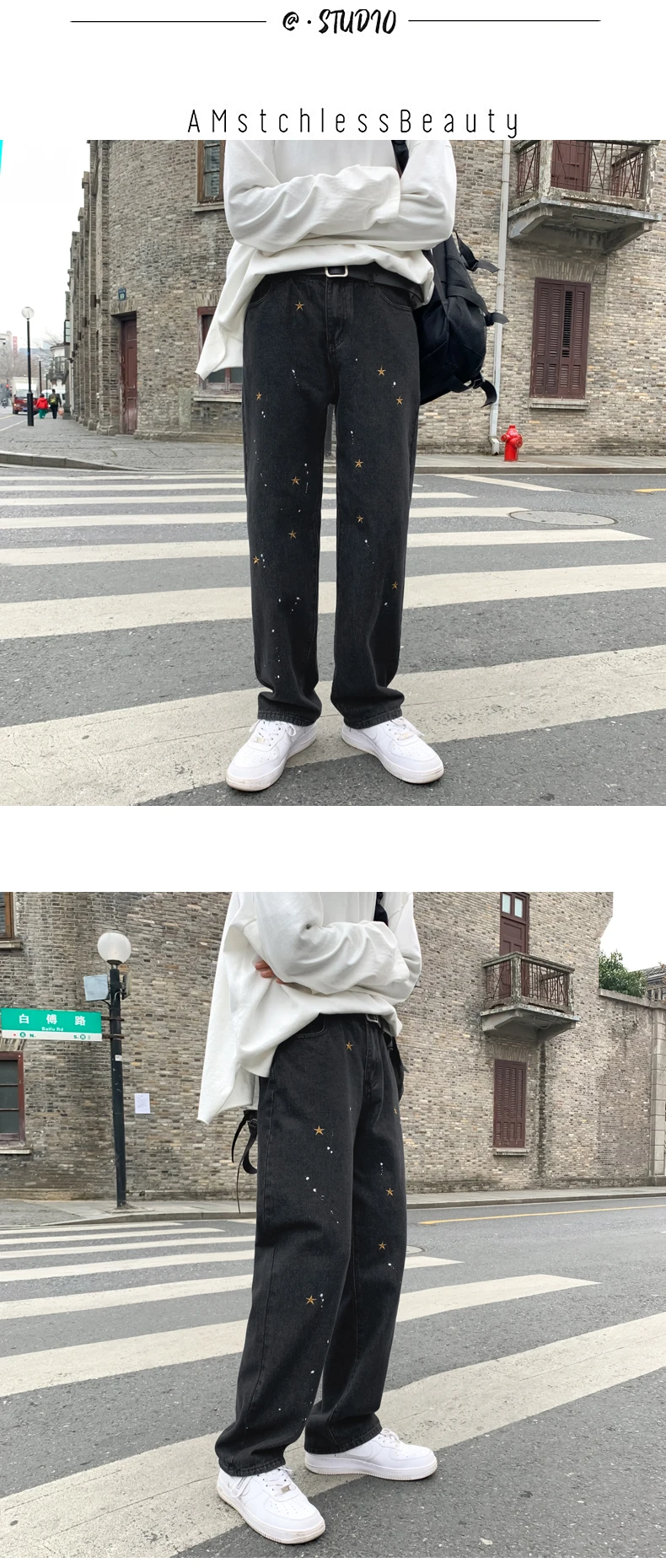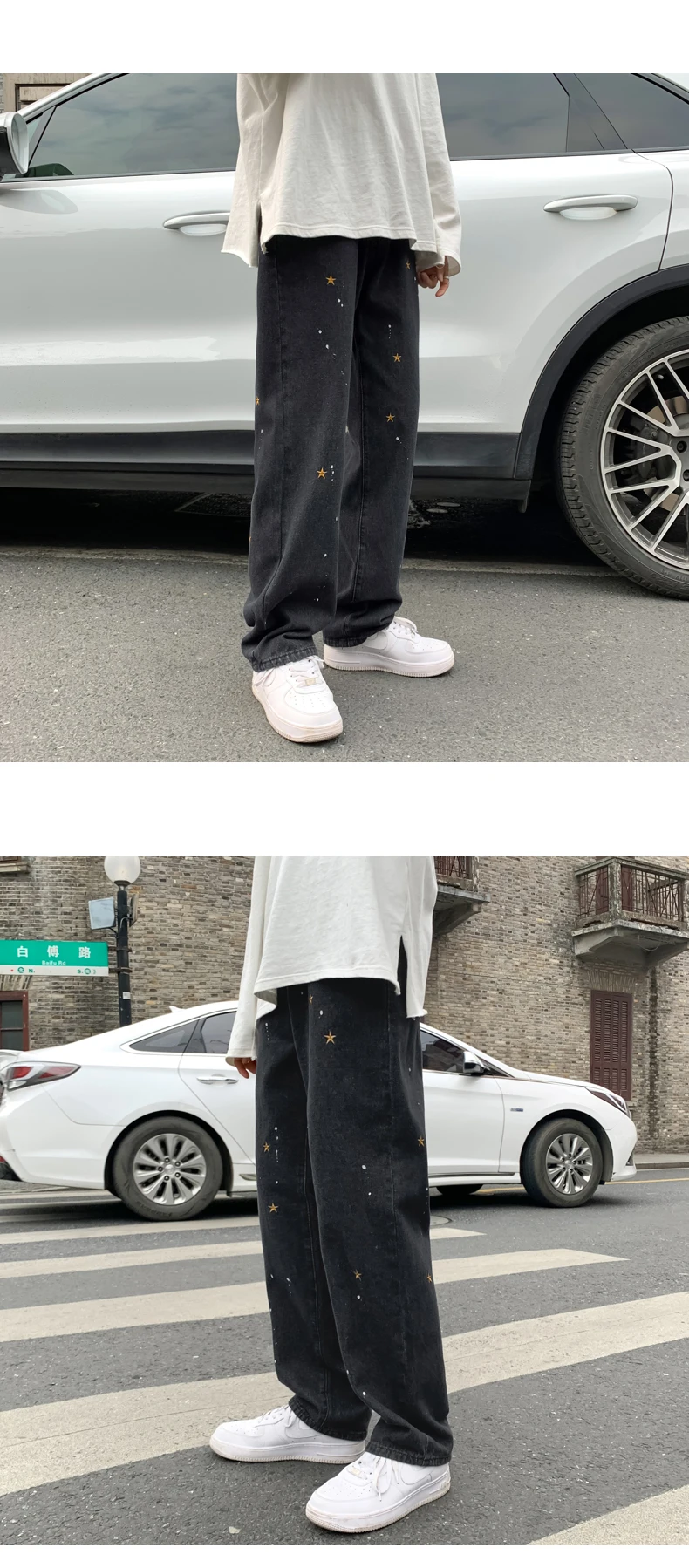 Черные джинсы с вышивкой в виде звезд, мужские Модные прямые свобод...