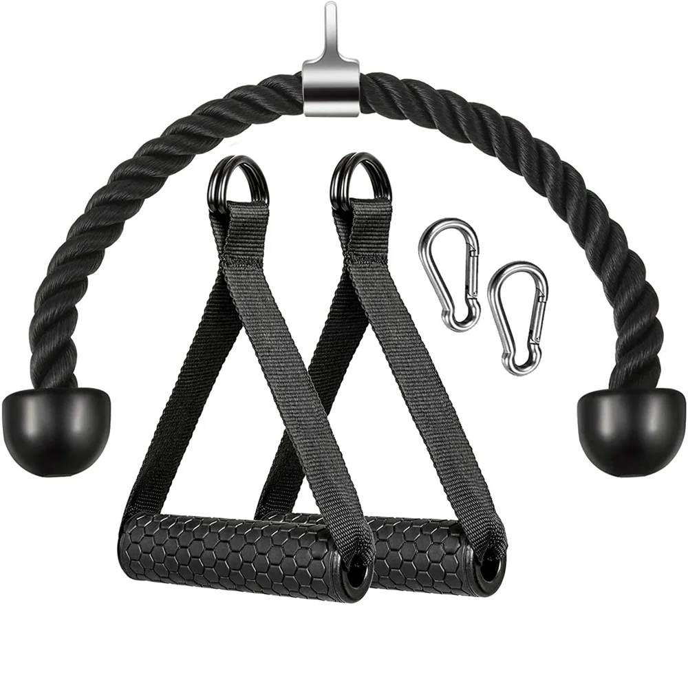 Веревка для трицепса, тянущаяся веревка, сверхпрочные насадки с ручкой из ремешка сопротивления, пружинный карабин, машина для взвешивания кабеля