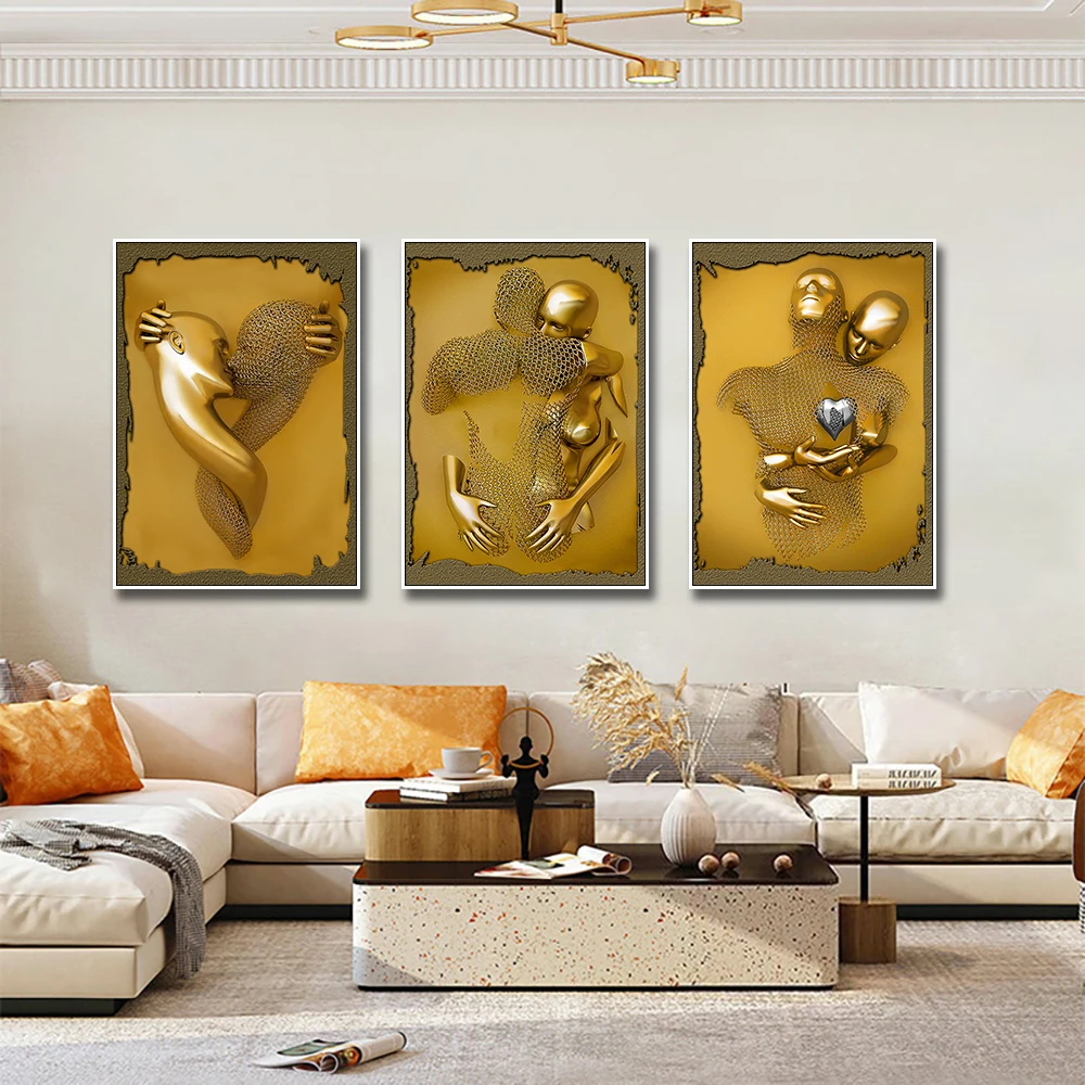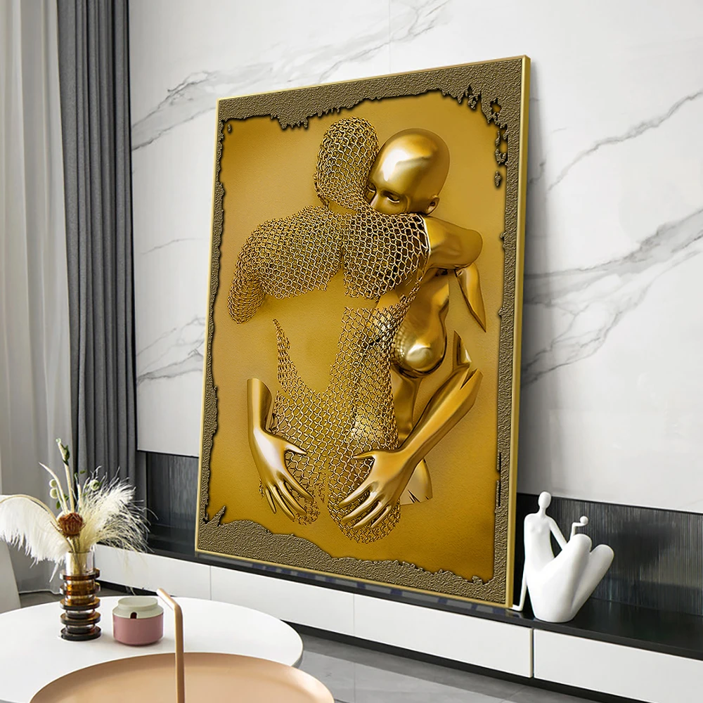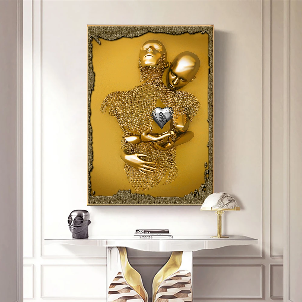 3D визуальное Искусство Влюбленные целуются and Hug металлические современные абстрактные постеры с напечатанными картинами, напечатанными на холсте для гостиной