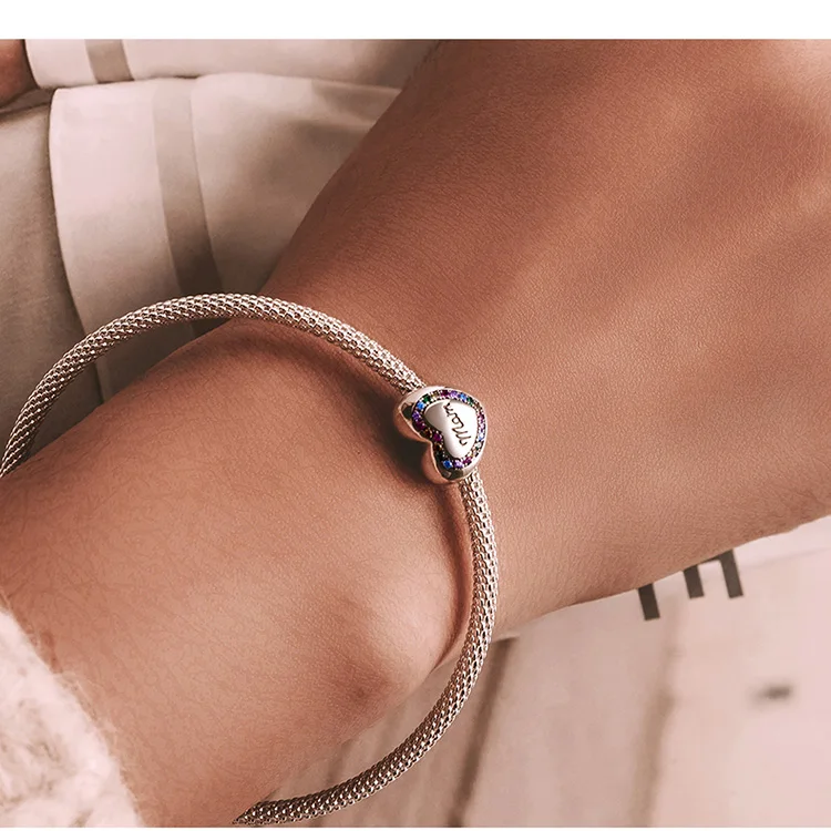 Bamoer серебро 925 пробы Радужный циркониевый в форме сердца Шарм к...