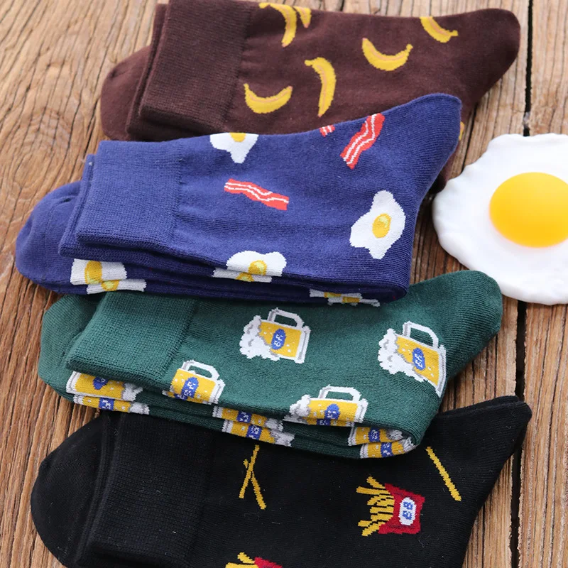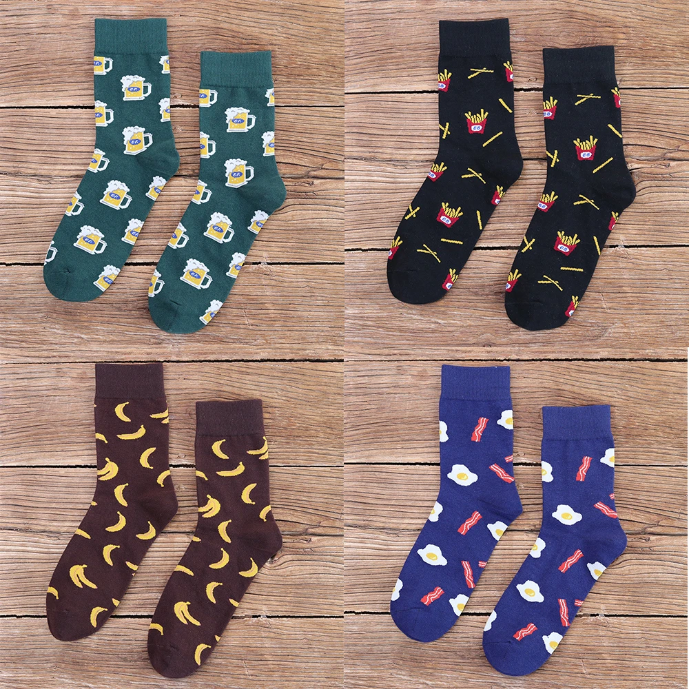 Парные носки, мужские жаккардовые носки с изображением еды из мультфильма, четыре цвета, Простые Модные Необычные милые интересные Популярные трендовые