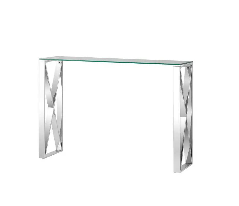 Консольный стол, Диванный стол из закаленного стекла, современный входной стол с прочной рамой из нержавеющей стали, узкий стол для гостиной