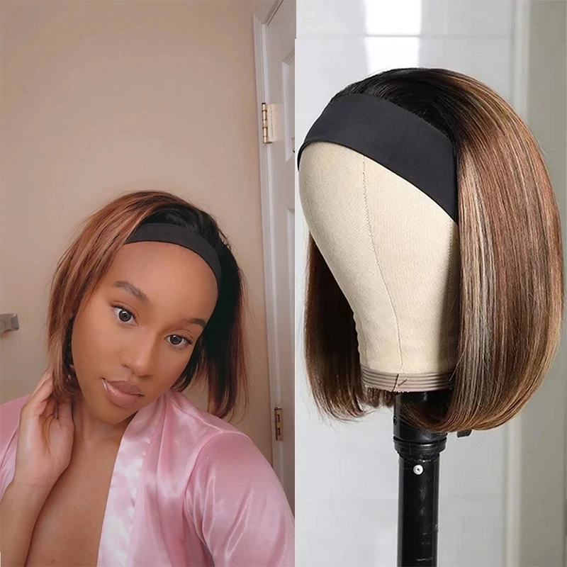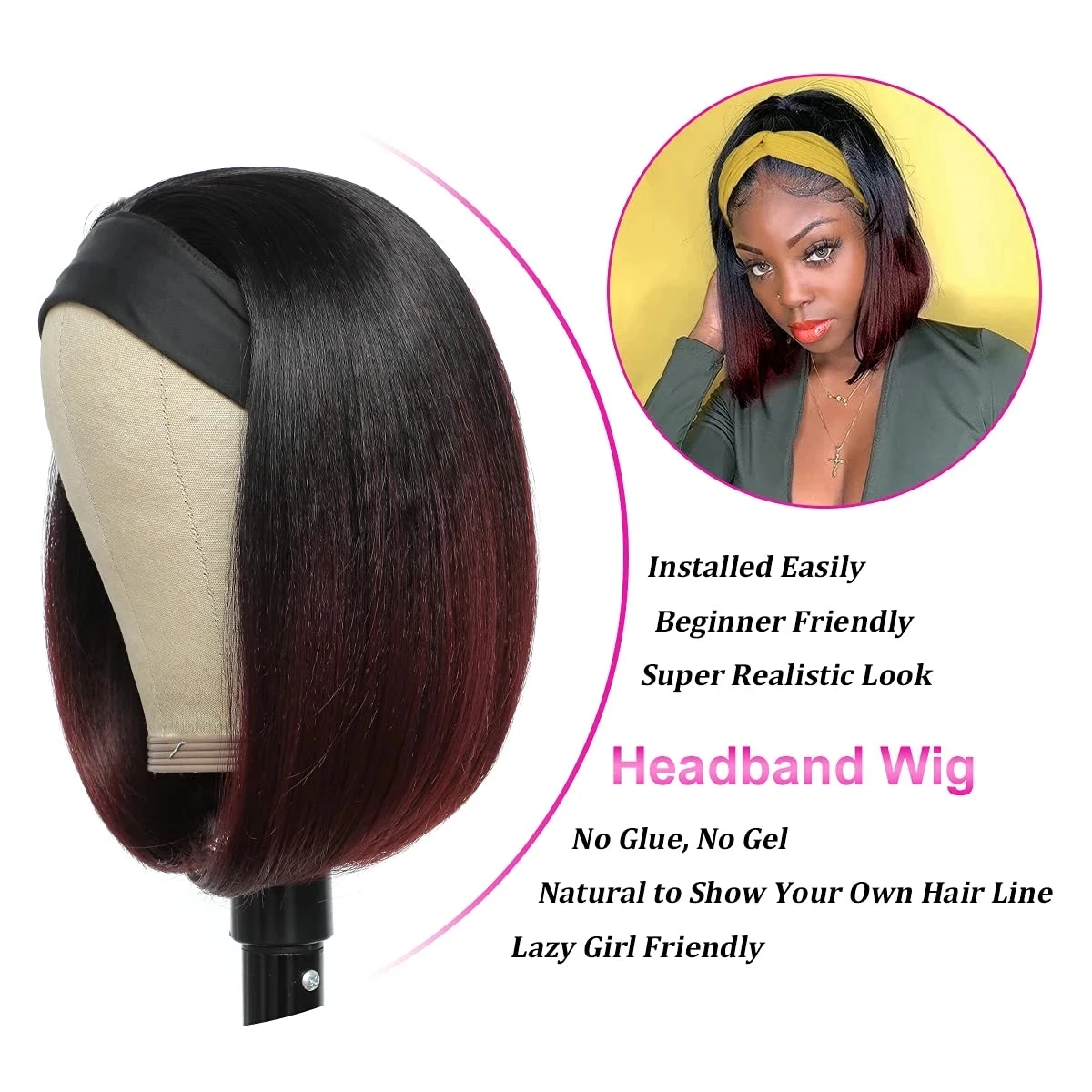 Прямые короткие парики с головной повязкой, 10, 12, 14 дюймов, синтетические безклеевые парики машинной работы для черных женщин, много цветов, новинка