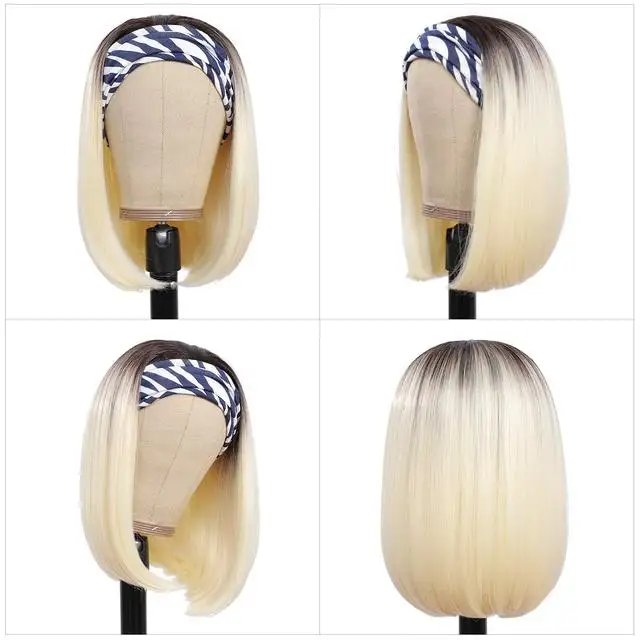 Парик Боб блонд с эффектом деграде, с повязкой на голову для чернок...