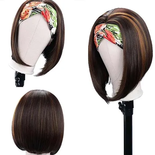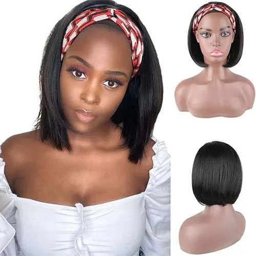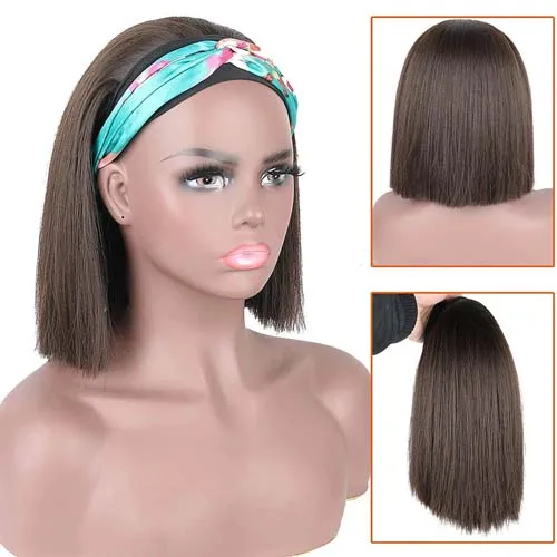 Афро прямые боб парик с головной повязкой Синтетические прямые пари...