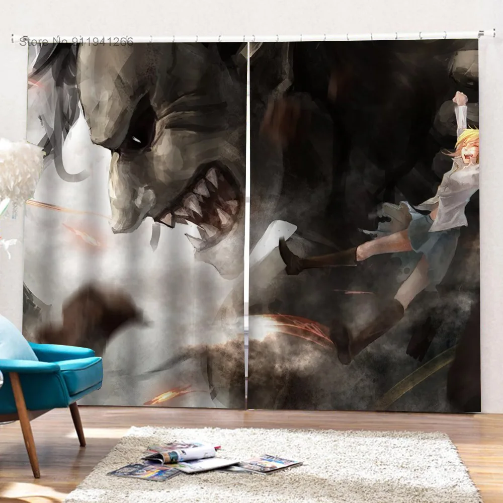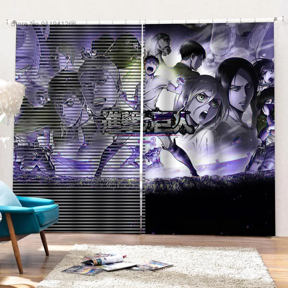 Шторы с аниме принтом атака на Титанов, кухонные ультратонкие занавески с микрозатенением для гостиной, спальни, оконные драпировки